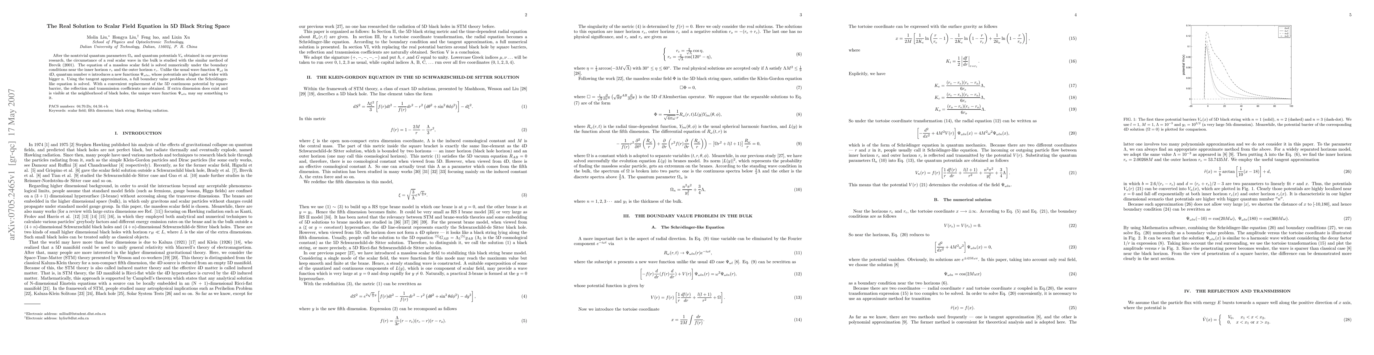 After the nontrivial quantum parameters $\Omega_{n}$ and quantum potentials $V_{n}$ obtained in our previous research, the circumstance of a real scalar wave in the bulk is studied with the similar method of Brevik (2001). The equation of a massless scalar field is solved numerically under the boundary conditions near the inner horizon $r_{e}$ and the outer horizon $r_{c}$. Unlike the usual wave function $\Psi_{\omega l}$ in 4D, quantum number $n$ introduces a new functions $\Psi_{\omega l n}$, whose potentials are higher and wider with bigger n. Using the tangent approximation, a full boundary value problem about the Schr$\ddot{o}$dinger-like equation is solved. With a convenient replacement of the 5D continuous potential by square barrier, the reflection and transmission coefficients are obtained. If extra dimension does exist and is visible at the neighborhood of black holes, the unique wave function $\Psi_{\omega l n}$ may say something to it.