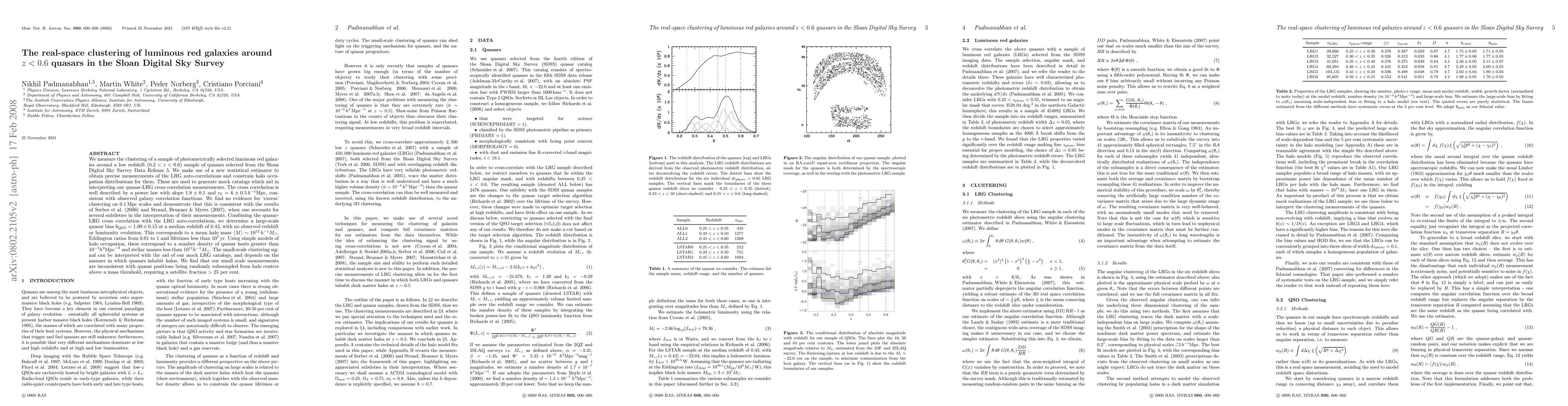 This study measures the clustering of luminous red galaxies around low-redshift quasars in the Sloan Digital Sky Survey, finding a quasar bias of 1.09±0.15 and no excess clustering on small scales. The results suggest quasars reside in halos with a mean mass of ~10^12 h^-1 M_sun, and indicate a satellite fraction > 25% for quasar positions.