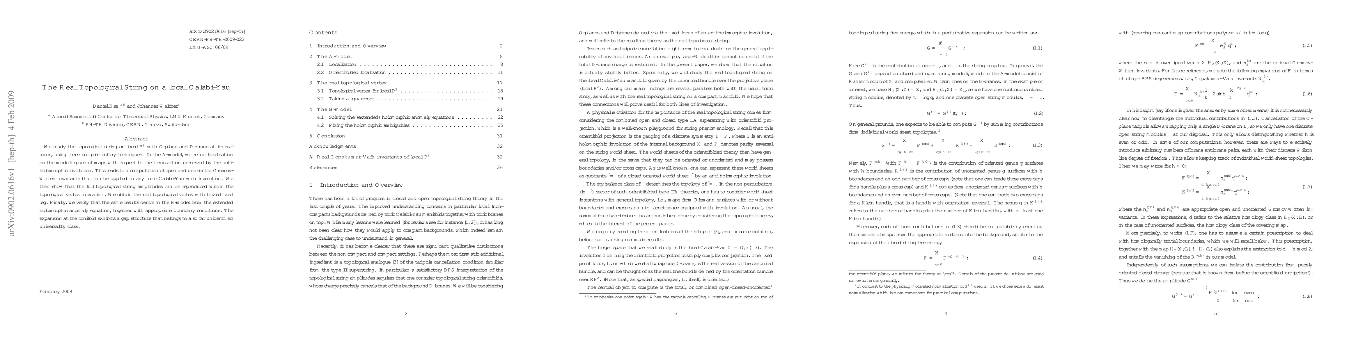 We study the topological string on local P2 with O-plane and D-brane at its real locus, using three complementary techniques. In the A-model, we refine localization on the moduli space of maps with respect to the torus action preserved by the anti-holomorphic involution. This leads to a computation of open and unoriented Gromov-Witten invariants that can be applied to any toric Calabi-Yau with involution. We then show that the full topological string amplitudes can be reproduced within the topological vertex formalism. We obtain the real topological vertex with trivial fixed leg. Finally, we verify that the same results derive in the B-model from the extended holomorphic anomaly equation, together with appropriate boundary conditions. The expansion at the conifold exhibits a gap structure that belongs to a so far unidentified universality class.