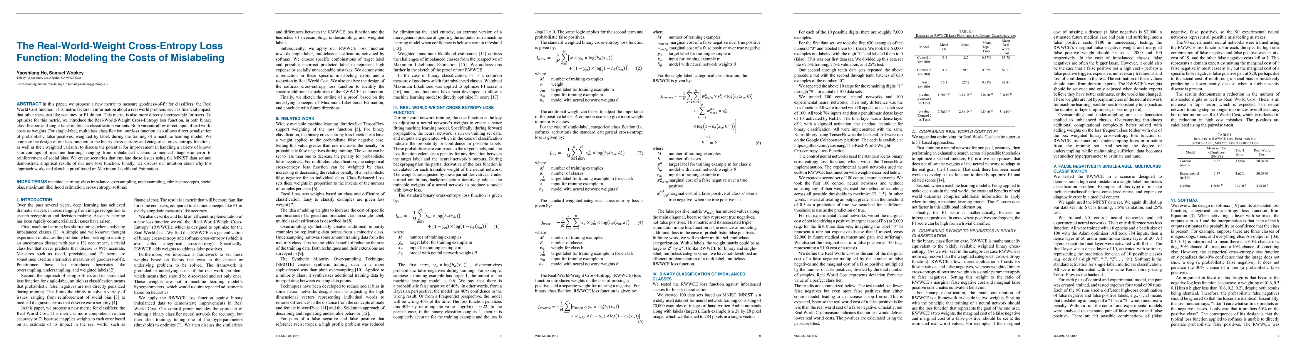 In this paper, we propose a new metric to measure goodness-of-fit for classifiers, the Real World Cost function. This metric factors in information about a real world problem, such as financial impact, that other measures like accuracy or F1 do not. This metric is also more directly interpretable for users. To optimize for this metric, we introduce the Real-World- Weight Crossentropy loss function, in both binary and single-label classification variants. Both variants allow direct input of real world costs as weights. For single-label, multicategory classification, our loss function also allows direct penalization of probabilistic false positives, weighted by label, during the training of a machine learning model. We compare the design of our loss function to the binary crossentropy and categorical crossentropy functions, as well as their weighted variants, to discuss the potential for improvement in handling a variety of known shortcomings of machine learning, ranging from imbalanced classes to medical diagnostic error to reinforcement of social bias. We create scenarios that emulate those issues using the MNIST data set and demonstrate empirical results of our new loss function. Finally, we sketch a proof of this function based on Maximum Likelihood Estimation and discuss future directions.