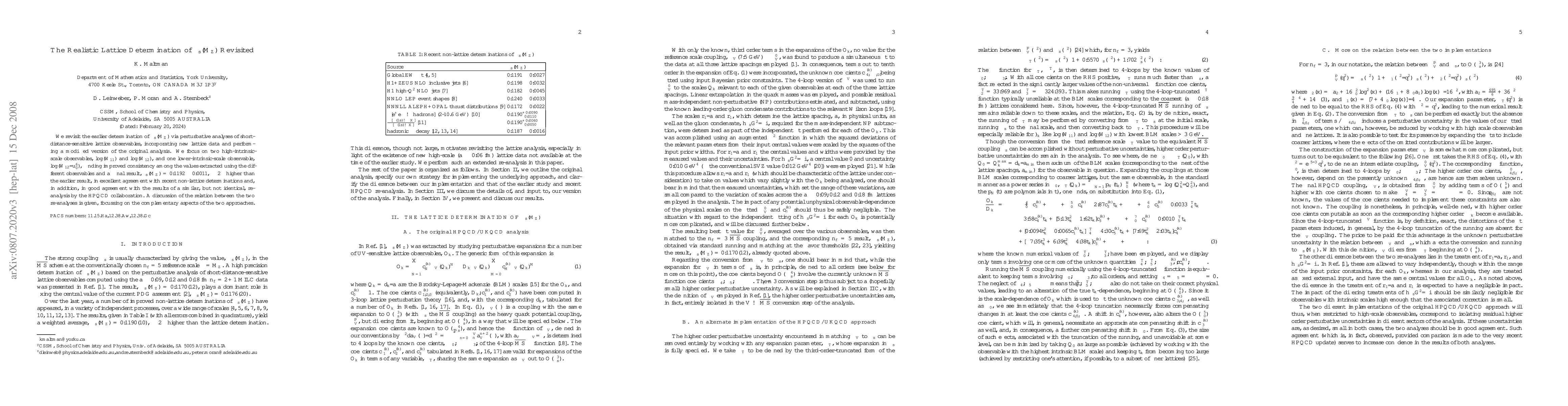 The paper presents a refined method for determining alpha_s(M_Z) using lattice QCD, incorporating new data and a modified analysis approach, leading to improved consistency and agreement with non-lattice determinations.