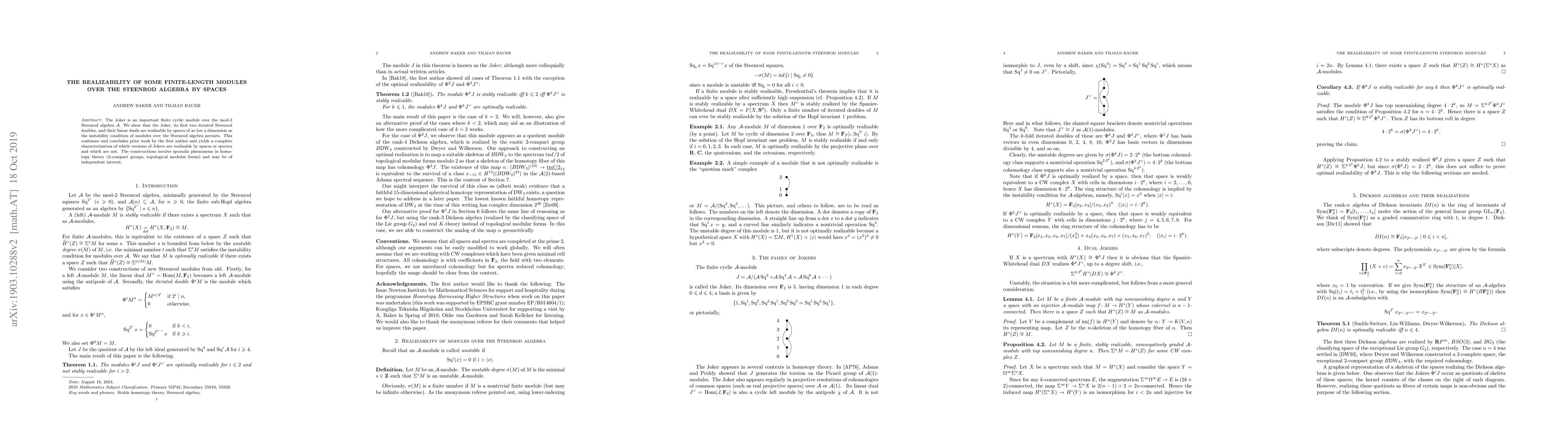 This paper demonstrates that certain finite-length modules over the Steenrod algebra, including the Joker and its iterated doubles, can be realized by spaces of minimal dimension, as allowed by instability conditions. The findings complete a characterization of realizability and involve unique homotopy phenomena.