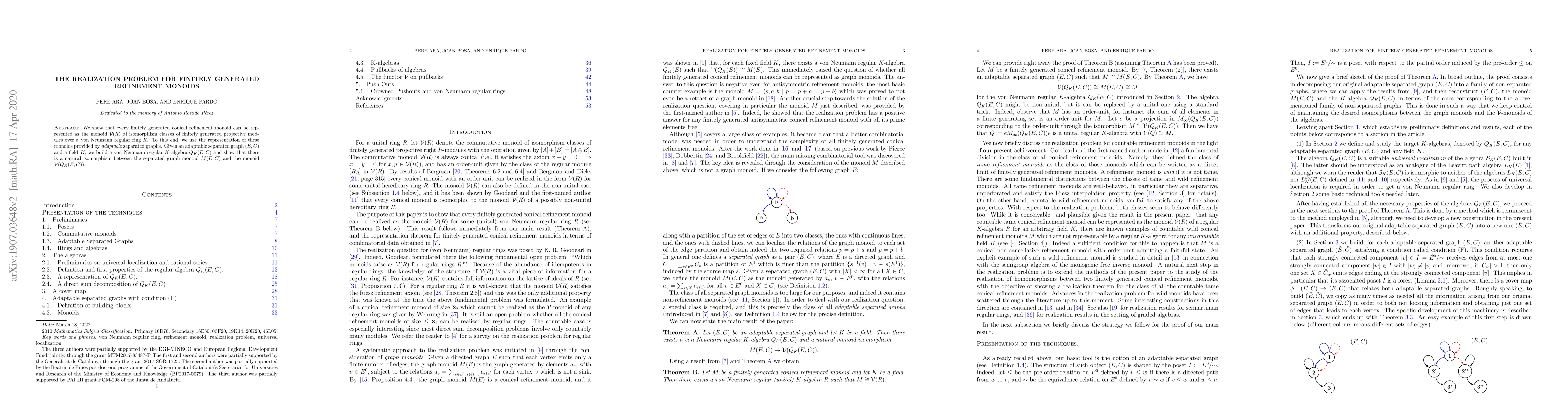 This paper demonstrates that any finitely generated conical refinement monoid can be represented as the monoid of isomorphism classes of finitely generated projective modules over a von Neumann regular ring $R$. The authors achieve this by constructing a von Neumann regular $K$-algebra from adaptable separated graphs and establishing a natural isomorphism between the graph monoid and the module monoid.