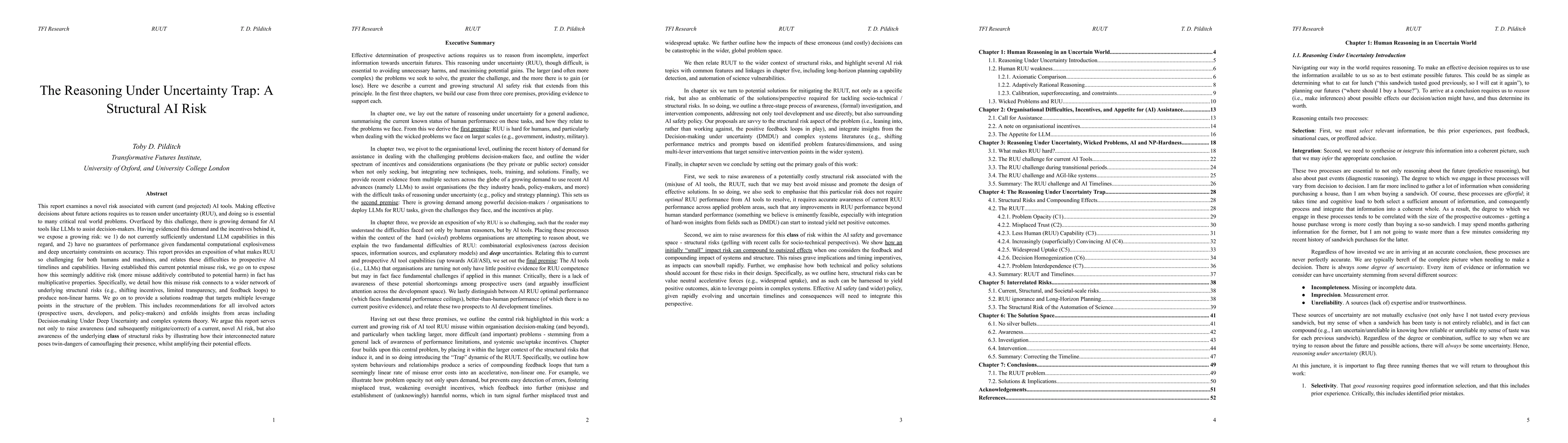 This report examines a novel risk associated with current (and projected) AI tools. Making effective decisions about future actions requires us to reason under uncertainty (RUU), and doing so is essential to many critical real world problems. Overfaced by this challenge, there is growing demand for AI tools like LLMs to assist decision-makers. Having evidenced this demand and the incentives behind it, we expose a growing risk: we 1) do not currently sufficiently understand LLM capabilities in this regard, and 2) have no guarantees of performance given fundamental computational explosiveness and deep uncertainty constraints on accuracy. This report provides an exposition of what makes RUU so challenging for both humans and machines, and relates these difficulties to prospective AI timelines and capabilities. Having established this current potential misuse risk, we go on to expose how this seemingly additive risk (more misuse additively contributed to potential harm) in fact has multiplicative properties. Specifically, we detail how this misuse risk connects to a wider network of underlying structural risks (e.g., shifting incentives, limited transparency, and feedback loops) to produce non-linear harms. We go on to provide a solutions roadmap that targets multiple leverage points in the structure of the problem. This includes recommendations for all involved actors (prospective users, developers, and policy-makers) and enfolds insights from areas including Decision-making Under Deep Uncertainty and complex systems theory. We argue this report serves not only to raise awareness (and subsequently mitigate/correct) of a current, novel AI risk, but also awareness of the underlying class of structural risks by illustrating how their interconnected nature poses twin-dangers of camouflaging their presence, whilst amplifying their potential effects.