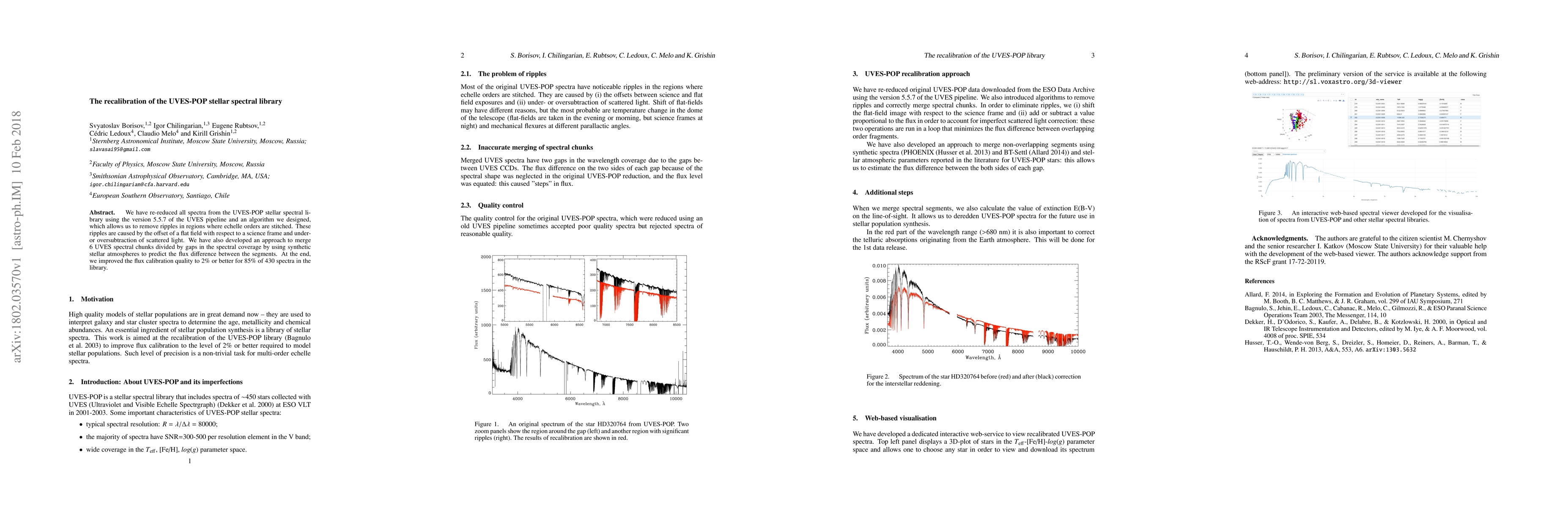 The UVES-POP stellar spectral library has been recalibrated to remove errors and improve accuracy, with 85% of 430 spectra now having flux calibration quality of 2% or better.