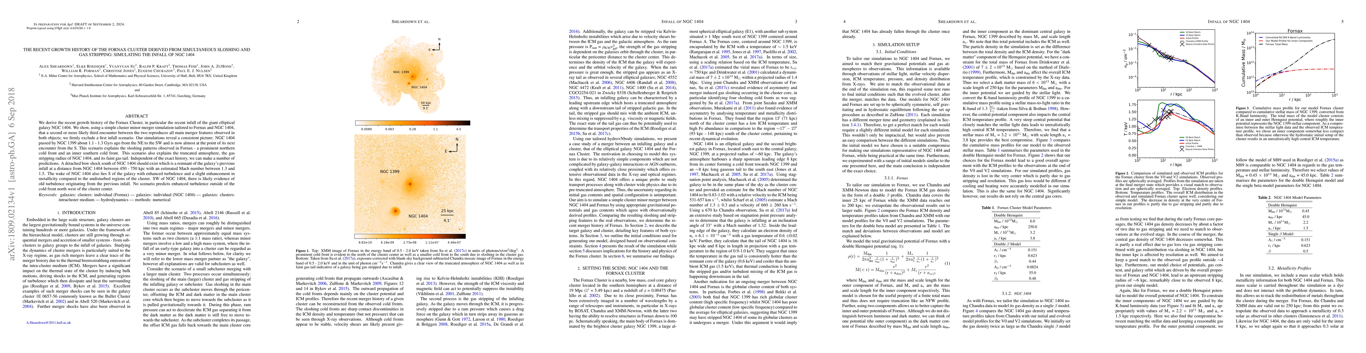 We derive the recent growth history of the Fornax Cluster, in particular the recent infall of the giant elliptical galaxy NGC 1404. We show, using a simple cluster minor merger simulation tailored to Fornax and NGC 1404, that a second or more likely third encounter between the two reproduces all main merger features observed in both objects; we firmly exclude a first infall scenario. Our simulations reveal a consistent picture: NGC 1404 passed by NGC 1399 about 1.1 - 1.3 Gyrs ago from the NE to the SW and is now almost at the point of its next encounter from the S. This scenario explains the sloshing patterns observed in Fornax - a prominent northern cold front and an inner southern cold front. This scenario also explains the truncated atmosphere, the gas stripping radius of NGC 1404, and its faint gas tail. Independent of the exact history, we can make a number of predictions. A detached bow shock south of NGC 1404 should exist which is a remnant of the galaxy's previous infall at a distance from NGC 1404 between 450 - 750 kpc with an estimated Mach number between 1.3 and 1.5. The wake of NGC 1404 also lies S of the galaxy with enhanced turbulence and a slight enhancement in metallicity compared to the undisturbed regions of the cluster. SW of NGC 1404, there is likely evidence of old turbulence originating from the previous infall. No scenario predicts enhanced turbulence outside of the cold front north west of the cluster center.