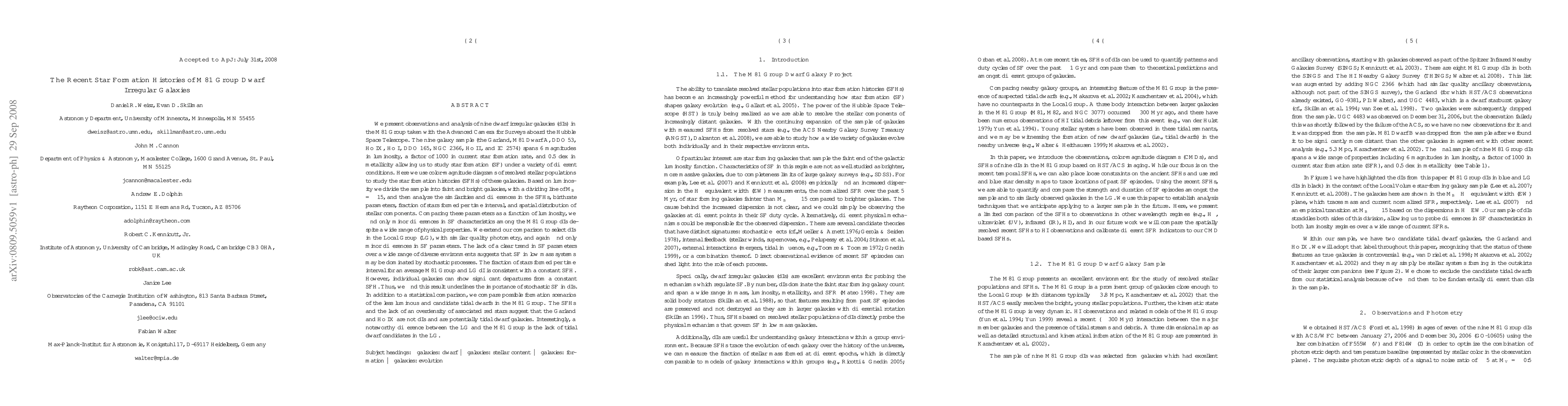 This paper examines the star formation histories of nine dwarf irregular galaxies in the M81 Group using Hubble Space Telescope data, finding that while most galaxies exhibit consistent star formation rates, individual galaxies show significant variations. The study also suggests that the Garland and Ho IX may be tidal dwarf galaxies rather than typical dIs.