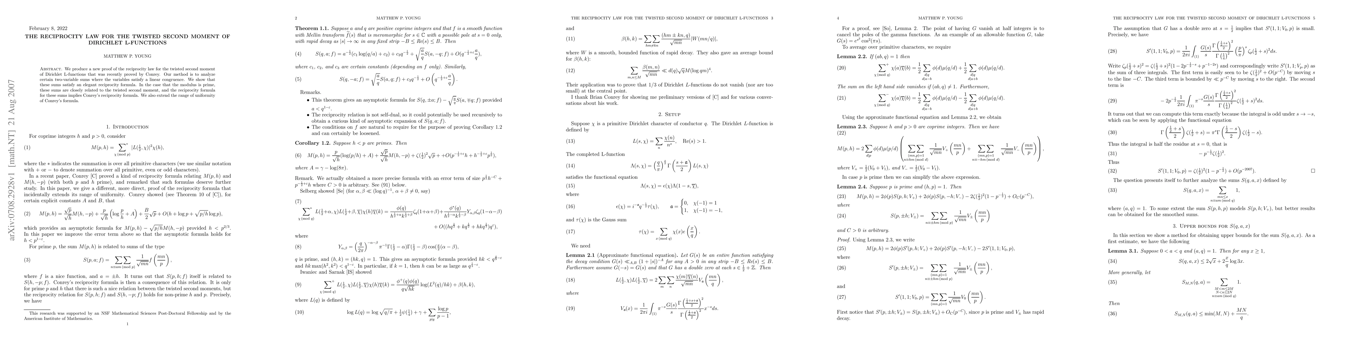 This work contributes to the understanding of Dirichlet L-functions by providing an alternative proof of the reciprocity law, which is crucial for analytic number theory and has implications for various problems in number theory.