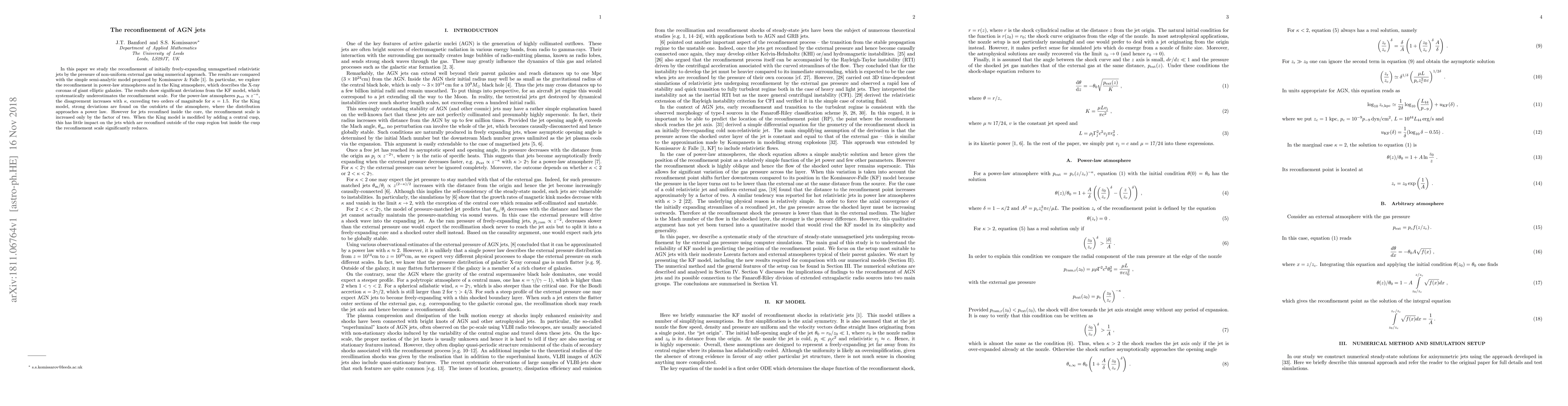 This paper investigates the reconfinement of relativistic jets by external gas pressure using numerical simulations, comparing results to the Komissarov & Falle (1997) model. Significant deviations are found, especially in power-law atmospheres, where the model underestimates the reconfinement scale by orders of magnitude.
