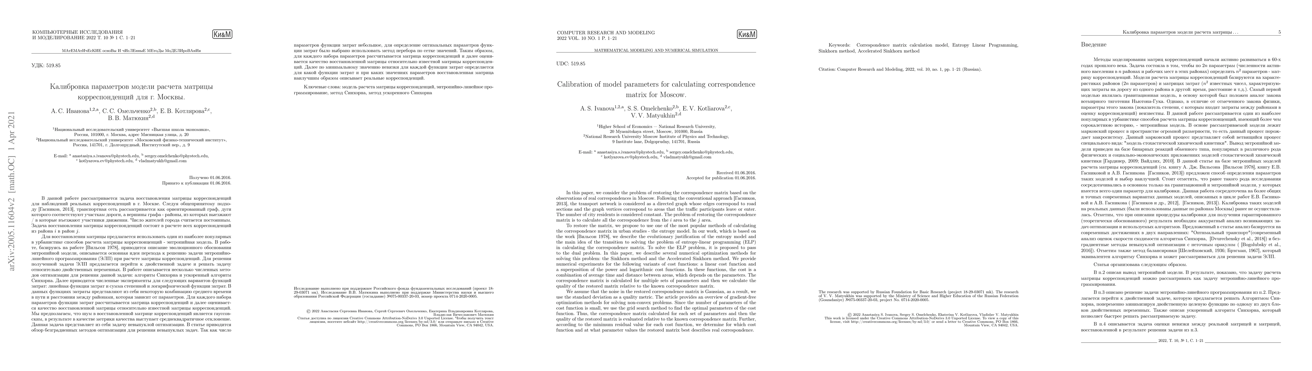 This research contributes to urban transport studies by providing a robust method for estimating correspondence matrices, which is crucial for traffic analysis and urban planning in large cities like Moscow.