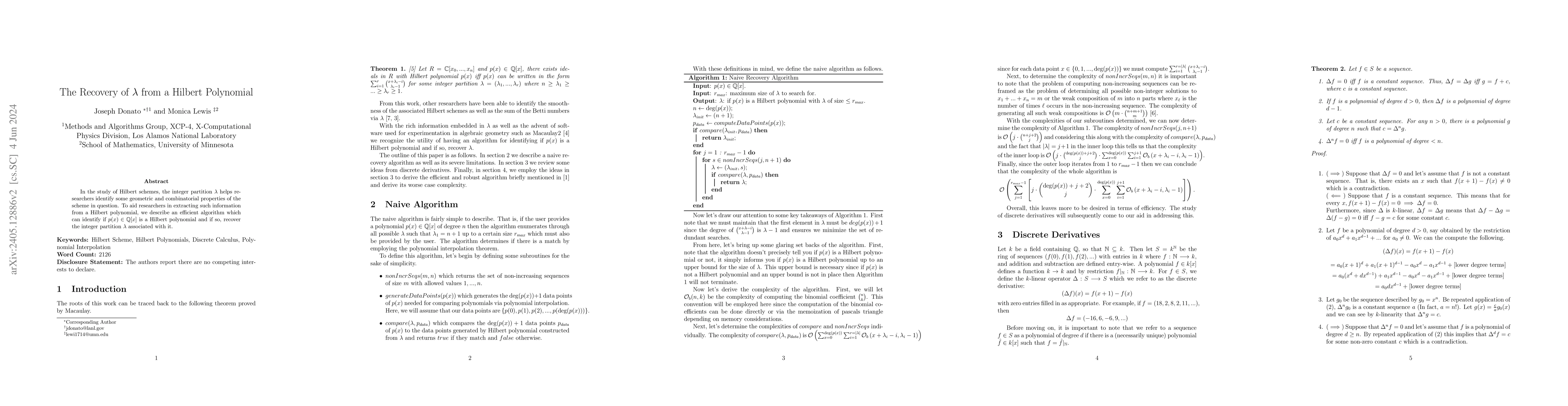 In the study of Hilbert schemes, the integer partition $\lambda$ helps researchers identify some geometric and combinatorial properties of the scheme in question. To aid researchers in extracting such information from a Hilbert polynomial, we describe an efficient algorithm which can identify if $p(x)\in\mathbb{Q}[x]$ is a Hilbert polynomial and if so, recover the integer partition $\lambda$ associated with it.