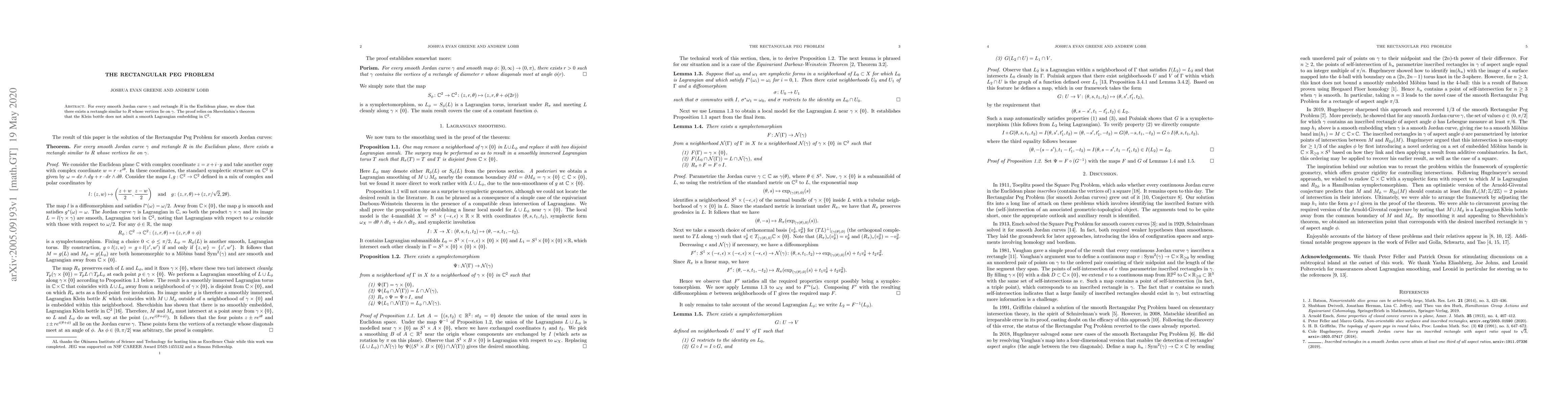 This research proves that for any smooth closed loop (Jordan curve) in a plane and any rectangle, there exists a similar rectangle with vertices on the loop. The proof uses Shevchishin's theorem about Lagrangian embeddings in complex space.
