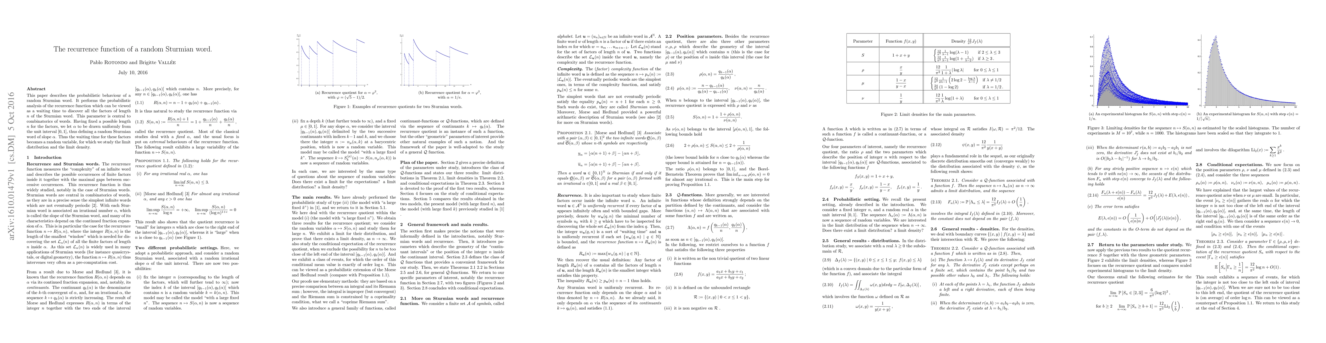 This paper describes the probabilistic behaviour of a random Sturmian word. It performs the probabilistic analysis of the recurrence function which can be viewed as a waiting time to discover all the factors of length $n$ of the Sturmian word. This parameter is central to combinatorics of words. Having fixed a possible length $n$ for the factors, we let $\alpha$ to be drawn uniformly from the unit interval $[0,1]$, thus defining a random Sturmian word of slope $\alpha$. Thus the waiting time for these factors becomes a random variable, for which we study the limit distribution and the limit density.