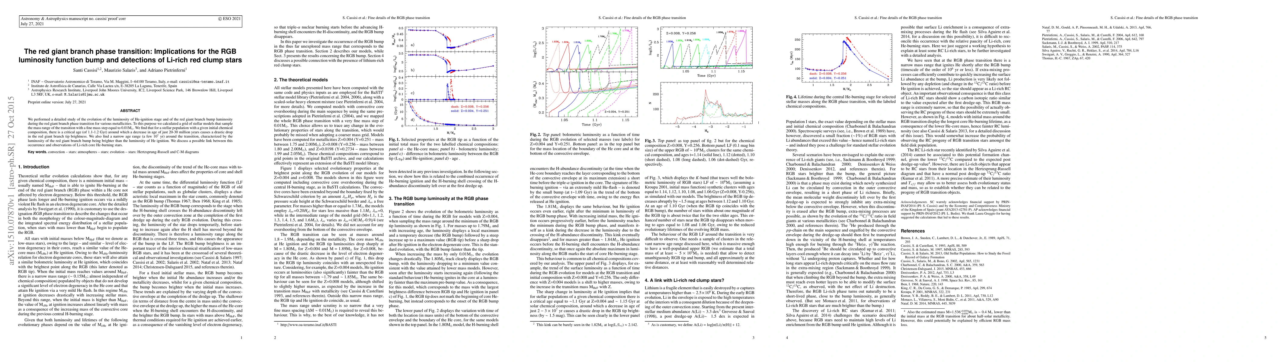 We performed a detailed study of the evolution of the luminosity of He-ignition stage and of the red giant branch bump luminosity during the red giant branch phase transition for various metallicities. To this purpose we calculated a grid of stellar models that sample the mass range of the transition with a fine mass step equal to ${\rm 0.01M_\odot}$. We find that for a stellar population with a given initial chemical composition, there is a critical age (of 1.1-1.2~Gyr) around which a decrease in age of just 20-30 million years causes a drastic drop in the red giant branch tip brightness. We also find a narrow age range (a few $10^7$ yr) around the transition, characterized by the luminosity of the red giant branch bump being brighter than the luminosity of He ignition. We discuss a possible link between this occurrence and observations of Li-rich core He-burning stars.