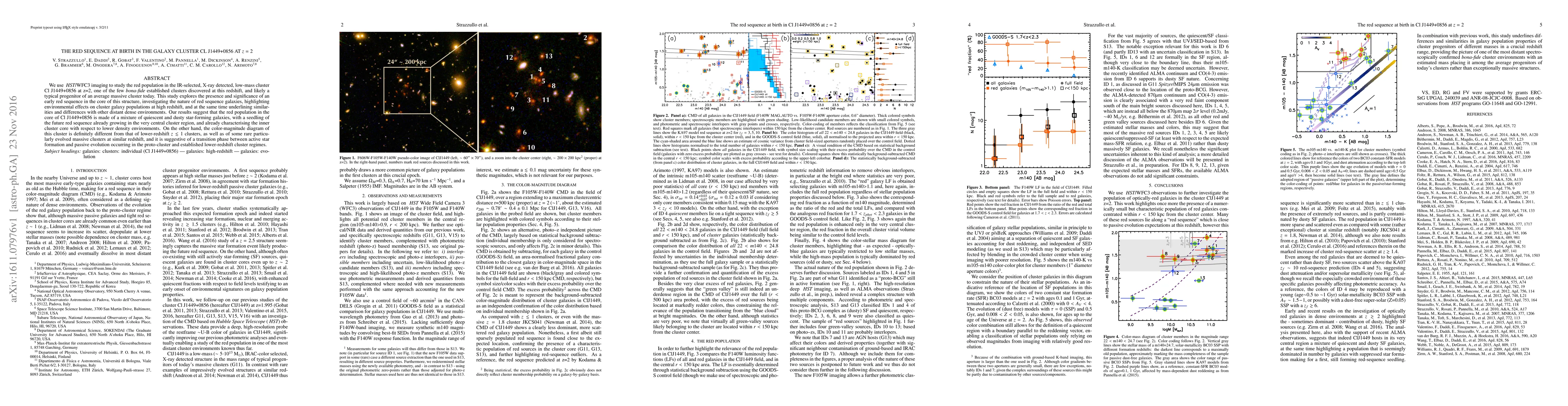 This study uses HST/WFC3 imaging to investigate the early red sequence in the galaxy cluster Cl J1449+0856 at z=2, revealing a mixture of quiescent and dusty star-forming galaxies in the cluster core, indicative of a transition phase between active star formation and passive evolution. The cluster's color-magnitude diagram differs from lower-redshift clusters, suggesting unique environmental effects on galaxy populations at high redshift.