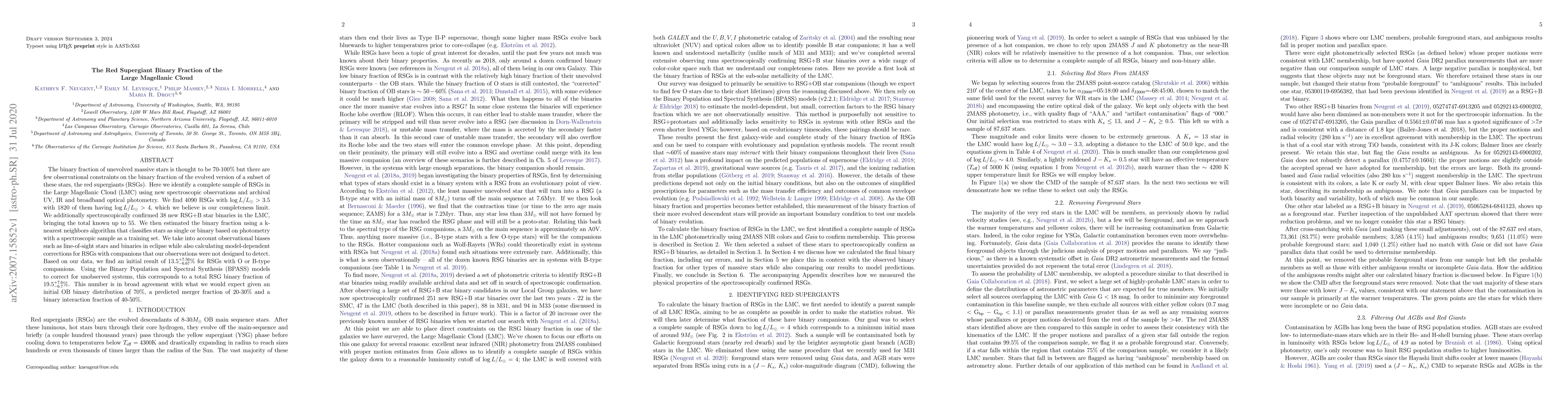 This study identifies a complete sample of red supergiants (RSGs) in the Large Magellanic Cloud (LMC) and estimates the binary fraction among them. The research finds a binary fraction of 19.5%, which is consistent with theoretical predictions given the initial binary distribution of massive stars.