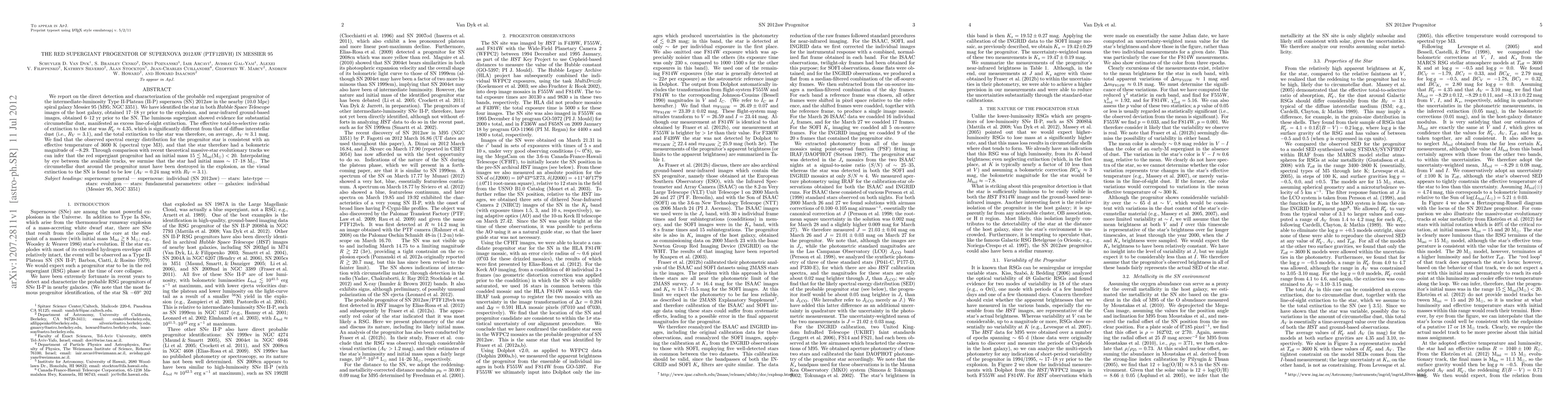 We report on the direct detection and characterization of the probable red supergiant progenitor of the intermediate-luminosity Type II-Plateau (II-P) supernova (SN) 2012aw in the nearby (10.0 Mpc) spiral galaxy Messier 95 (M95; NGC 3351). We have identified the star in both Hubble Space Telescope images of the host galaxy, obtained 17-18 yr prior to the explosion, and near-infrared ground-based images, obtained 6-12 yr prior to the SN. The luminous supergiant showed evidence for substantial circumstellar dust, manifested as excess line-of-sight extinction. The effective total-to-selective ratio of extinction to the star was R'_V \approx 4.35, which is significantly different from that of diffuse interstellar dust (i.e., R_V=3.1), and the total extinction to the star was therefore, on average, A_V \approx 3.1 mag. We find that the observed spectral energy distribution for the progenitor star is consistent with an effective temperature of 3600 K (spectral type M3), and that the star therefore had a bolometric magnitude of -8.29. Through comparison with recent theoretical massive-star evolutionary tracks we can infer that the red supergiant progenitor had an initial mass 15 \lesssim M_{ini} (M_sun) < 20. Interpolating by eye between the available tracks, we surmise that the star had initial mass ~17-18 M_sun. The circumstellar dust around the progenitor must have been destroyed in the explosion, as the visual extinction to the SN is found to be low (A_V=0.24 mag with R_V=3.1).