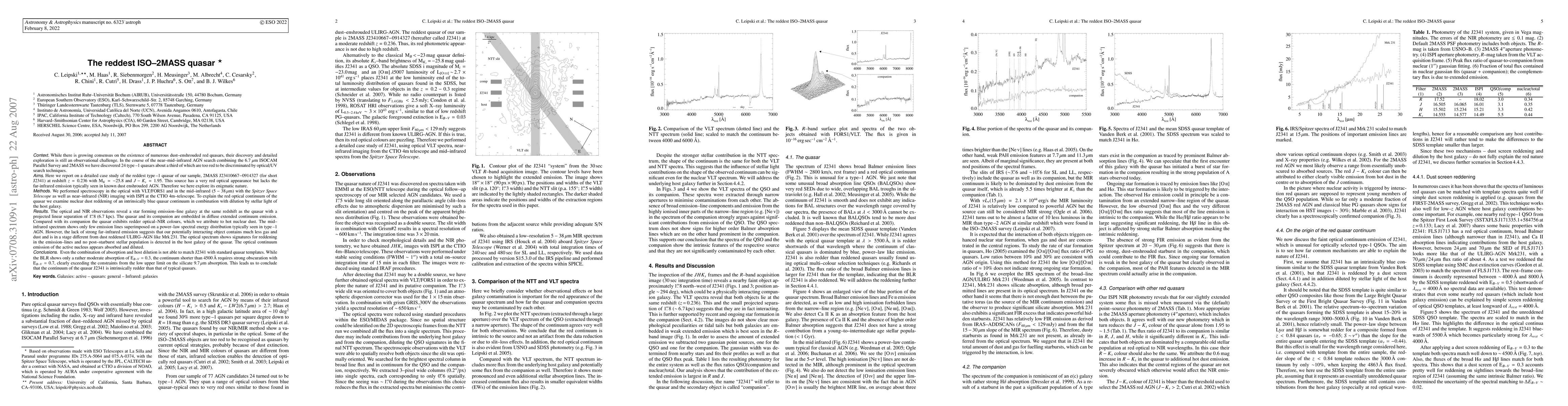 This paper investigates the reddest type-1 quasar (J2341) discovered in a NIR/MIR AGN search, revealing it to be redder than typical quasars due to hot nuclear dust. The quasar is found alongside a star-forming emission-line galaxy, suggesting a different stage of interaction compared to dust-reddened ultra-luminous infrared galaxies.