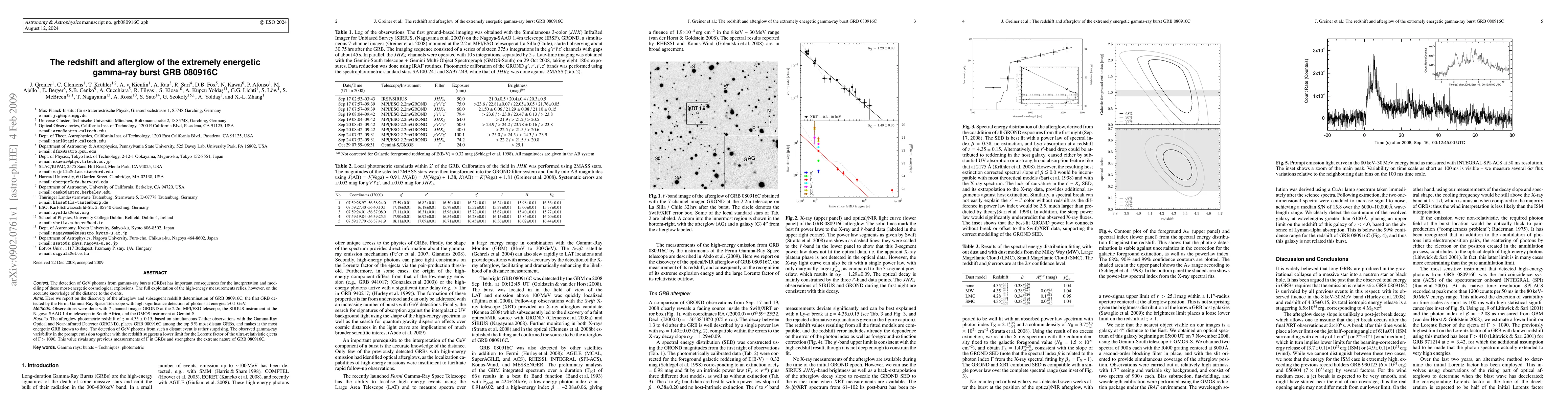 This paper reports the discovery of the afterglow and redshift of GRB 080916C, detected by the Fermi Gamma-Ray Space Telescope, placing it at a redshift of z=4.35±0.15 and among the most distant and energetic GRBs. The detection of GeV photons from such a distant event suggests an extreme Lorentz factor of Gamma > 1090.