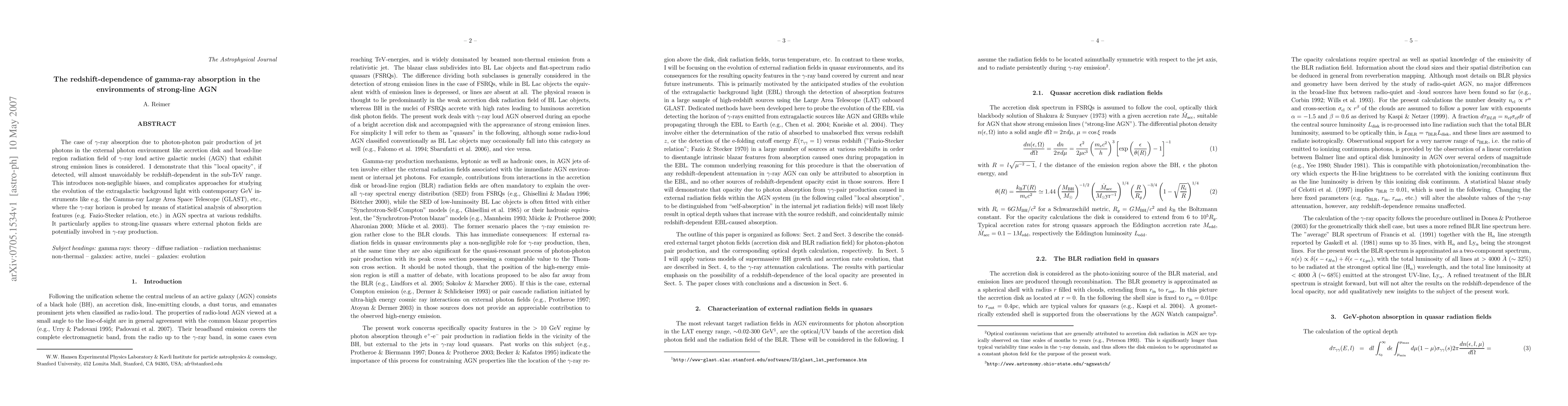 The case of gamma-ray absorption due to photon-photon pair production of jet photons in the external photon environment like accretion disk and broad-line region radiation field of gamma-ray loud active galactic nuclei (AGN) that exhibit strong emission lines is considered. I demonstrate that this ''local opacity'', if detected, will almost unavoidably be redshift-dependent in the sub-TeV range. This introduces non-negligible biases, and complicates approaches for studying the evolution of the extragalactic background light with contemporary GeV instruments like e.g. the Gamma-ray Large Area Space Telescope (GLAST), etc., where the gamma-ray horizon is probed by means of statistical analysis of absorption features (e.g. Fazio-Stecker relation, etc.) in AGN spectra at various redshifts. It particularly applies to strong-line quasars where external photon fields are potentially involved in gamma-ray production.