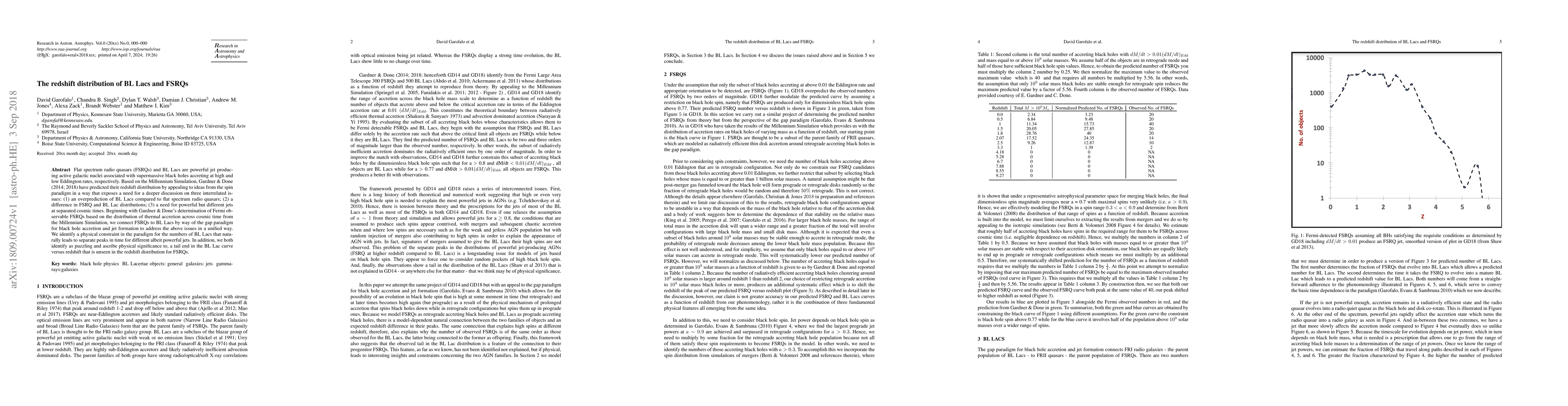 Flat spectrum radio quasars (FSRQs) and BL Lacs are powerful jet producing active galactic nuclei associated with supermassive black holes accreting at high and low Eddington rates, respectively. Based on the Millennium Simulation, Gardner and Done (2014; 2018) have predicted their redshift distribution by appealing to ideas from the spin paradigm in a way that exposes a need for a deeper discussion on three interrelated issues: (1) an overprediction of BL Lacs compared to flat spectrum radio quasars; (2) a difference in FSRQ and BL Lac distributions; (3) a need for powerful but different jets at separated cosmic times. Beginning with Gardner and Done's determination of Fermi observable FSRQs based on the distribution of thermal accretion across cosmic time from the Millennium Simulation, we connect FSRQs to BL Lacs by way of the gap paradigm for black hole accretion and jet formation to address the above issues in a unified way. We identify a physical constraint in the paradigm for the numbers of BL Lacs that naturally leads to separate peaks in time for different albeit powerful jets. In addition, we both identify as puzzling and ascribe physical significance to a tail end in the BL Lac curve versus redshift that is unseen in the redshift distribution for FSRQs.