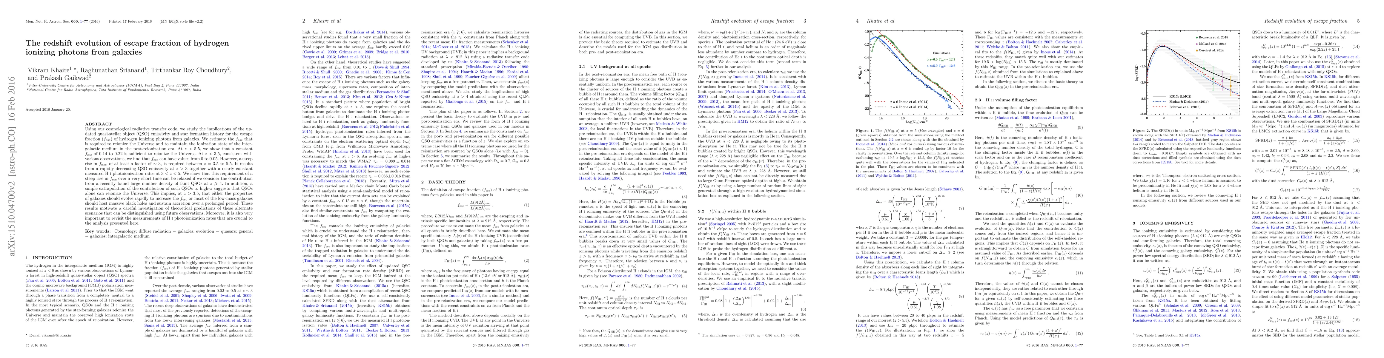 (f_esc) of hydrogen ionizing photons from galaxies. We estimate the f_esc that