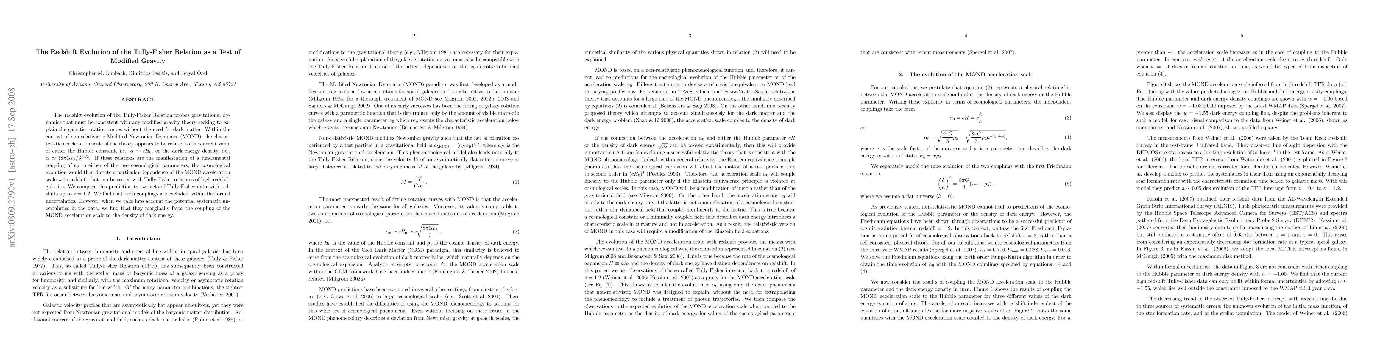 This paper investigates the redshift evolution of the Tully-Fisher Relation to test modified gravity theories like MOND, finding that neither the Hubble constant nor dark energy density coupling to the MOND acceleration scale is favored within formal uncertainties. However, accounting for systematic uncertainties, the data marginally supports the coupling to dark energy density.