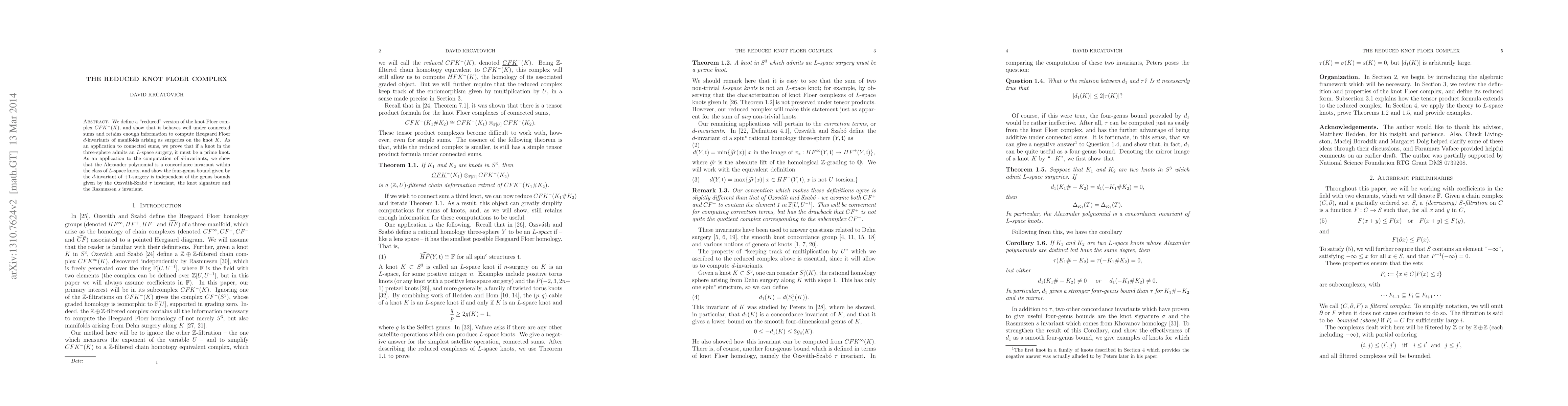 This paper introduces a "reduced" knot Floer complex $CFK^-(K)$ that maintains essential information for computing Heegaard Floer $d$-invariants and is compatible with connected sums. It also proves that prime knots are necessary for knots admitting $L$-space surgeries and demonstrates the Alexander polynomial's role as a concordance invariant for $L$-space knots.