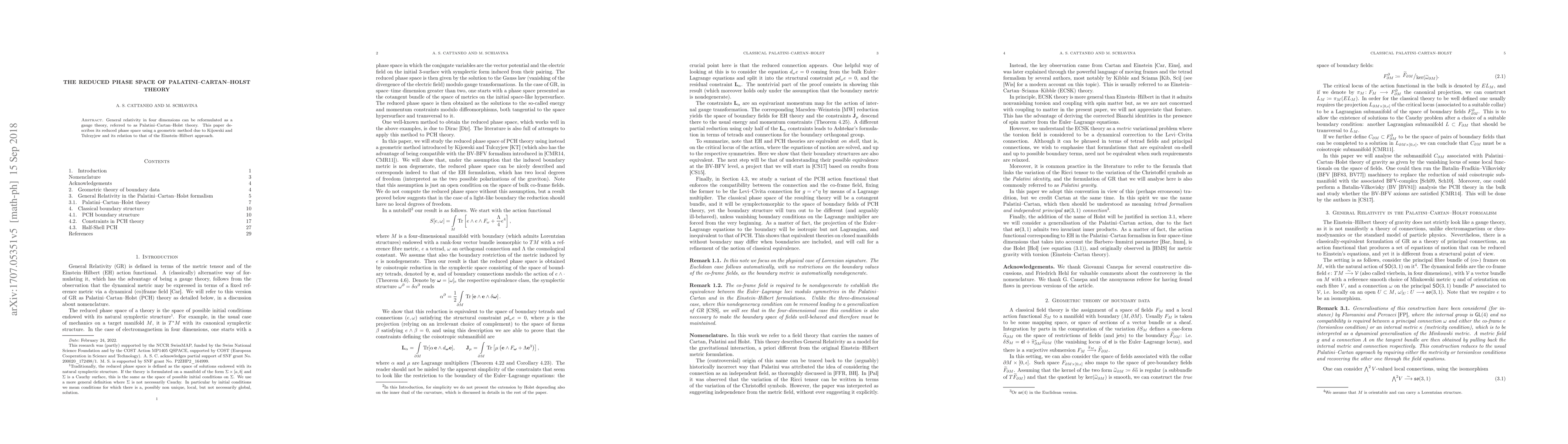 This paper reformulates general relativity as Palatini-Cartan-Holst theory and employs Kijowski and Tulczyjew's geometric method to describe its reduced phase space, comparing it to the Einstein-Hilbert approach.