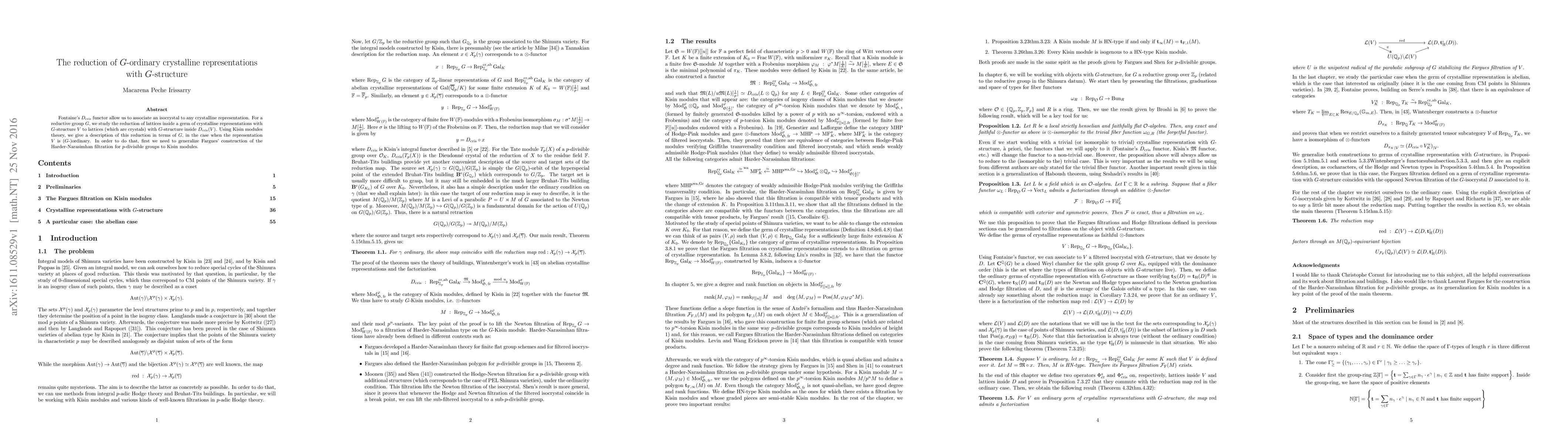 Fontaine's $D_{\mathrm{cris}}$ functor allow us to associate an isocrystal to any crystalline representation. For a reductive group $G$, we study the reduction of lattices inside a germ of crystalline representations with $G$-structure $V$ to lattices (which are crystals) with $G$-structure inside $D_{\mathrm{cris}}(V)$. Using Kisin modules theory, we give a description of this reduction in terms of $G$, in the case when the representation $V$ is ($G$-)ordinary. In order to do that, first we need to generalize Fargues' construction of the Harder-Narasimhan filtration for $p$-divisible groups to Kisin modules.