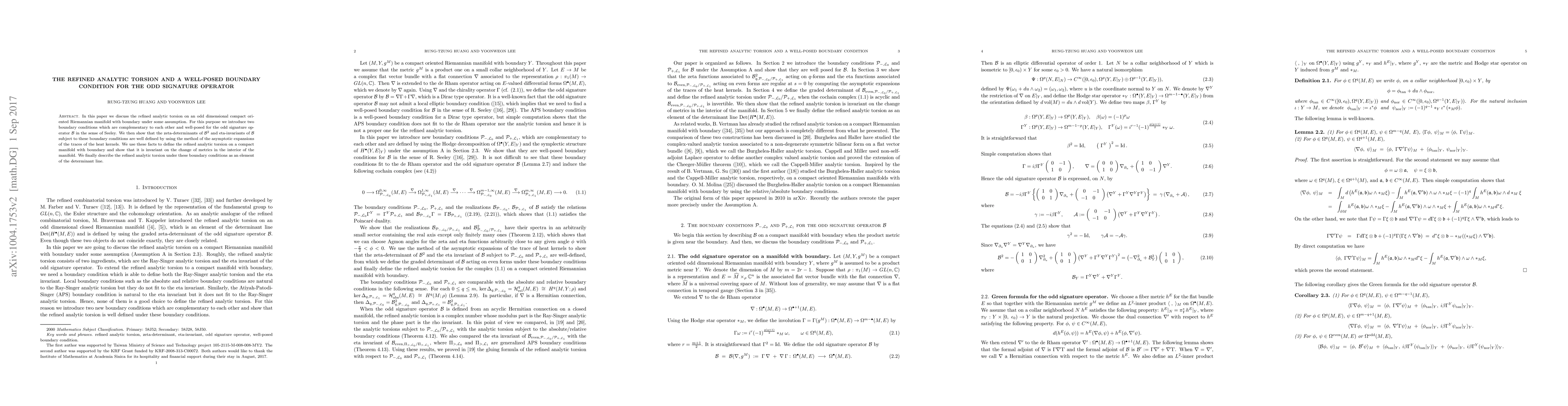 This paper refines the concept of analytic torsion on odd-dimensional Riemannian manifolds with boundary, introducing two complementary boundary conditions for the odd signature operator. It demonstrates the well-definedness of the zeta-determinants and eta-invariants under these conditions, ultimately defining and proving the invariance of the refined analytic torsion under metric changes.