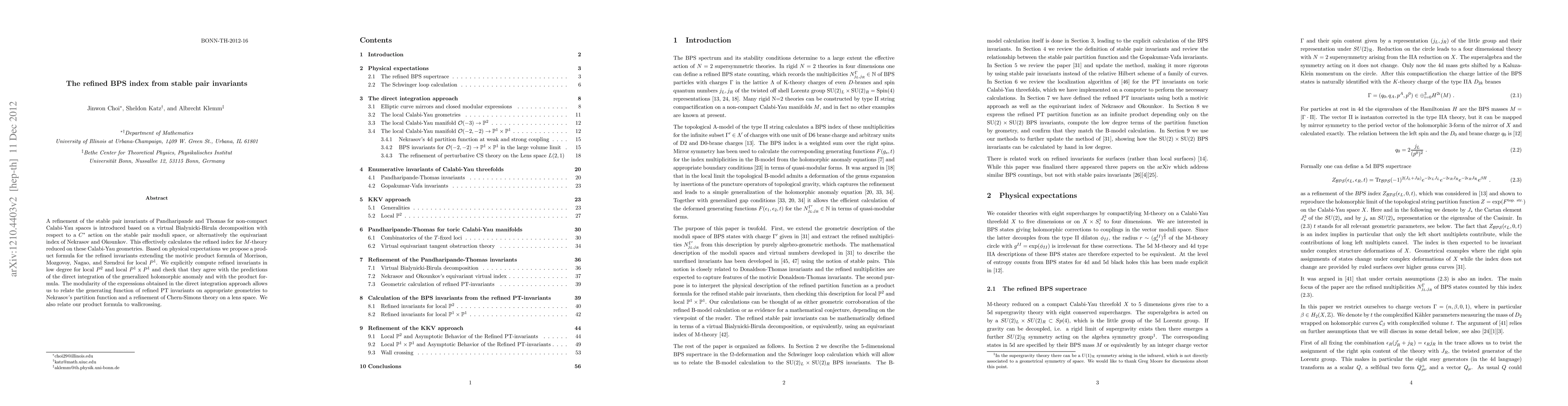 This paper introduces a refined BPS index based on stable pair invariants for non-compact Calabi-Yau spaces, proposing a product formula that extends previous motivic results. The authors compute these refined invariants in low degree for specific geometries and find agreement with predictions from holomorphic anomaly integration and modularity relations.