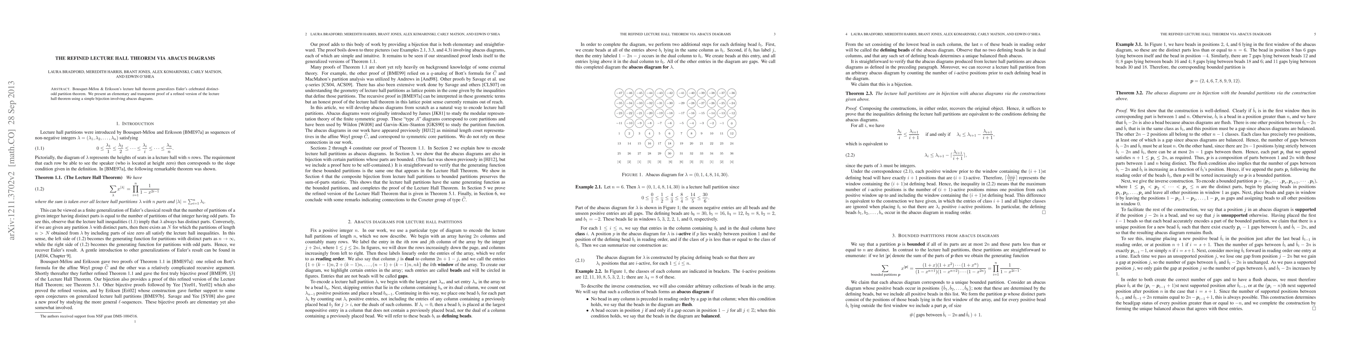Bousquet-M\'elou & Eriksson's lecture hall theorem generalizes Euler's celebrated distinct-odd partition theorem. We present an elementary and transparent proof of a refined version of the lecture hall theorem using a simple bijection involving abacus diagrams.