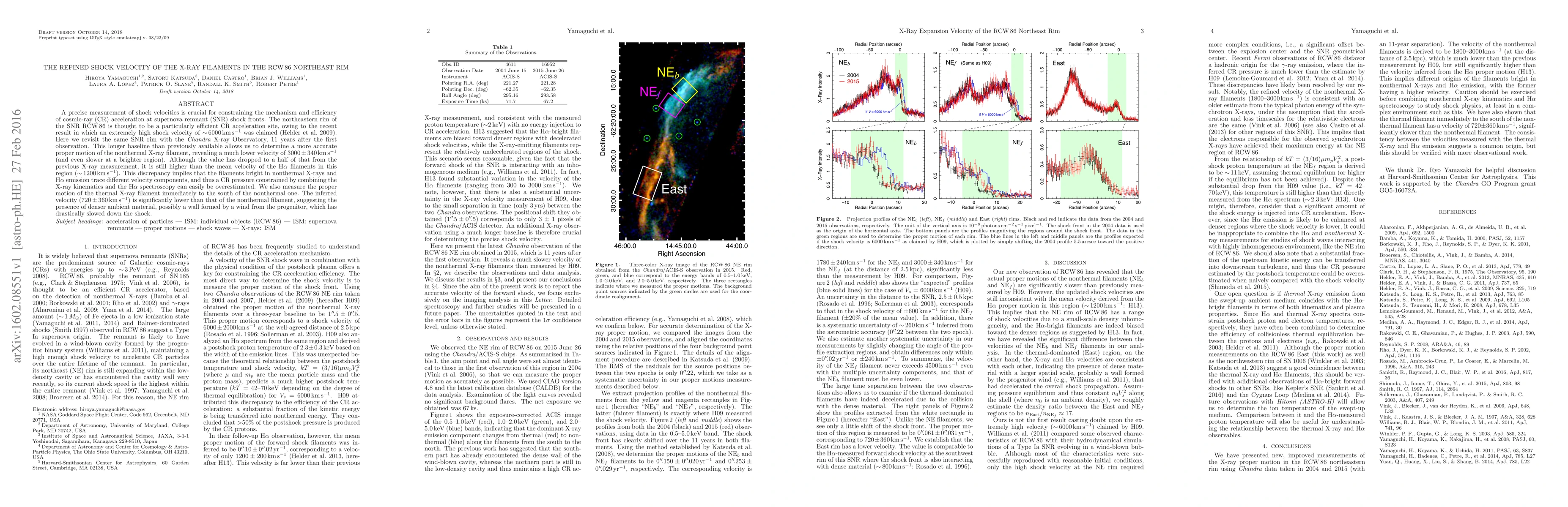 Revisiting RCW 86's northeastern rim with Chandra, the study finds a lower nonthermal X-ray filament shock velocity of 3000 ± 340 km/s, half of the previous estimate. This discrepancy suggests different velocity components for X-ray and H-alpha filaments, potentially overestimating CR pressure. The thermal filament to the south shows a slower velocity (720 ± 360 km/s), indicating denser ambient material, possibly a wind from the progenitor, that slowed the shock.