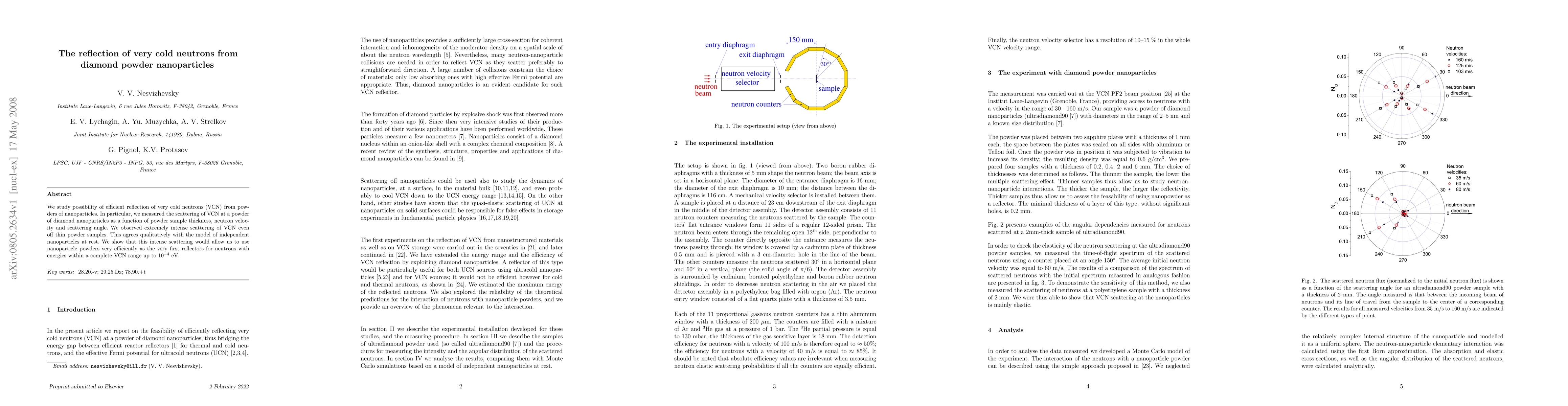 This study investigates the efficient reflection of very cold neutrons (VCN) from diamond nanoparticle powders, finding intense scattering even from thin samples, which aligns with the model of stationary nanoparticles and suggests their potential use as effective initial reflectors for VCN energies up to $10^{-4}$ eV.