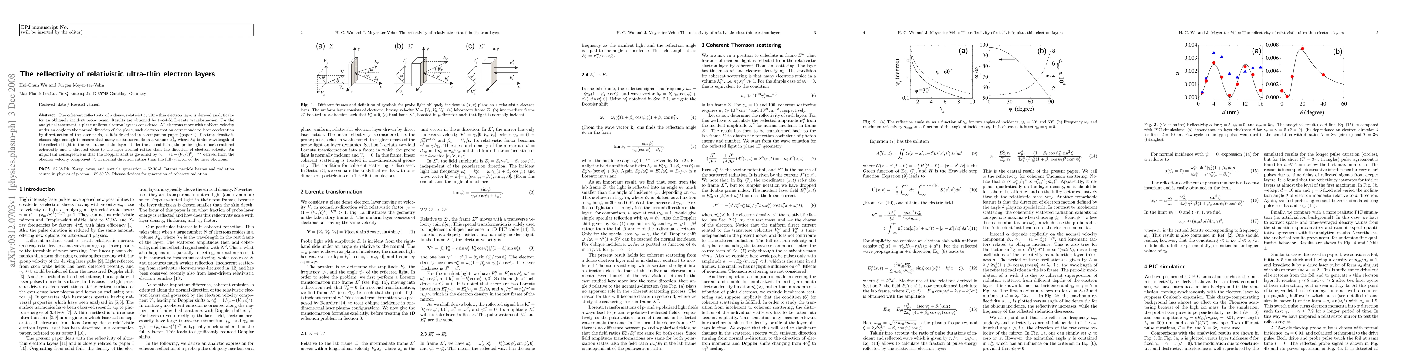 Researchers derived an analytical model for the reflectivity of relativistic ultra-thin electron layers, finding that Doppler shift is governed by the velocity component in the normal direction rather than the full gamma-factor.