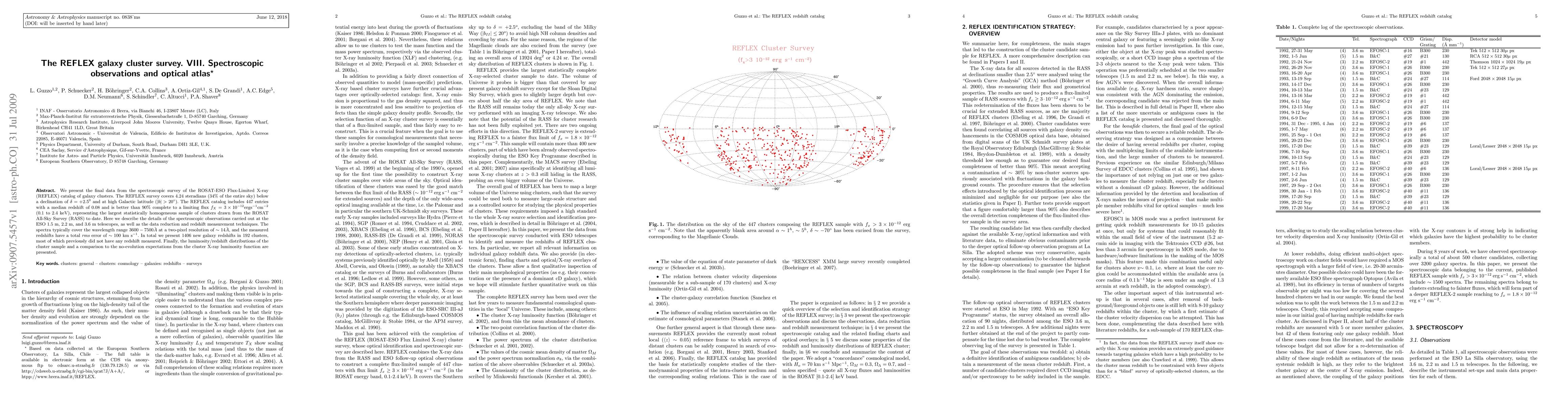 We present the final data from the spectroscopic survey of the ROSAT-ESO Flux-Limited X-ray (REFLEX) catalog of galaxy clusters. The REFLEX survey covers 4.24 steradians (34% of the entire sky) below a declination of 2.5 deg and at high Galactic latitude (|b| > 20 deg). The REFLEX catalog includes 447 entries with a median redshift of 0.08 and is better than 90% complete to a limiting flux fx = 3x10^{-12} erg s^{-1} cm^{-2} (0.1 to 2.4 keV), representing the largest statistically homogeneous sample of clusters drawn from the ROSAT All-Sky Survey (RASS) to date. Here we describe the details of the spectroscopic observations carried out at the ESO 1.5 m, 2.2 m, and 3.6 m telescopes, as well as the data reduction and redshift measurement techniques. The spectra typically cover the wavelength range 3600-7500 A at a FWHM resolution of ~14 A, and the measured redshifts have a total rms error of ~100 km s^{-1}. In total we present 1406 new galaxy redshifts in 192 clusters, most of which previously did not have any redshift measured. Finally, the luminosity/redshift distributions of the cluster sample and a comparison to the no-evolution expectations from the cluster X-ray luminosity function are presented.
