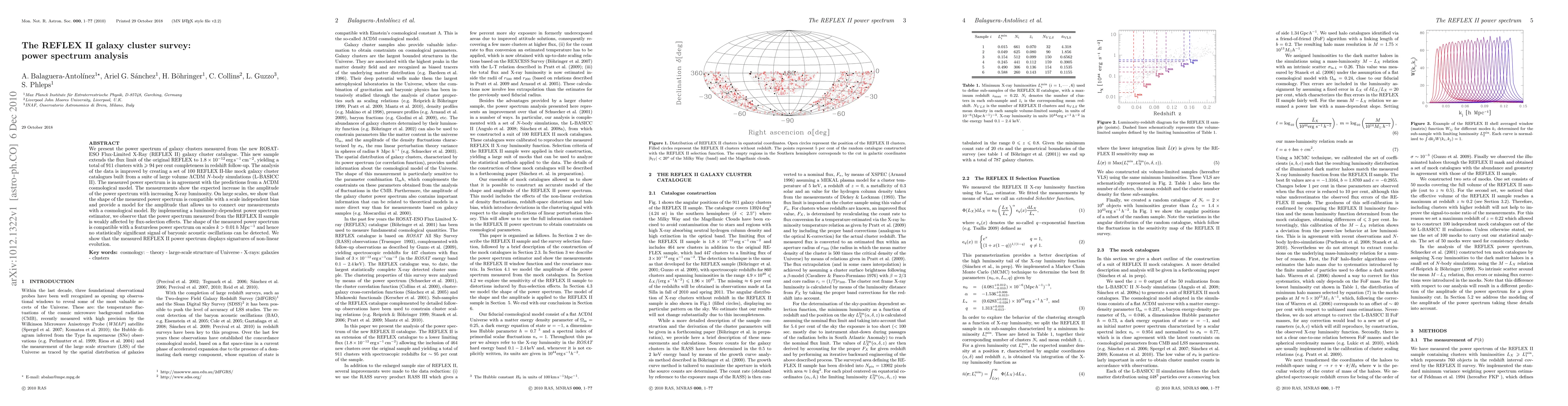 The REFLEX II galaxy cluster survey presents a power spectrum analysis from a new catalogue of X-ray galaxy clusters, showing agreement with LCDM cosmological model predictions. The survey's power spectrum indicates non-linear evolution signatures and lacks a detectable baryonic acoustic oscillation signal on large scales.