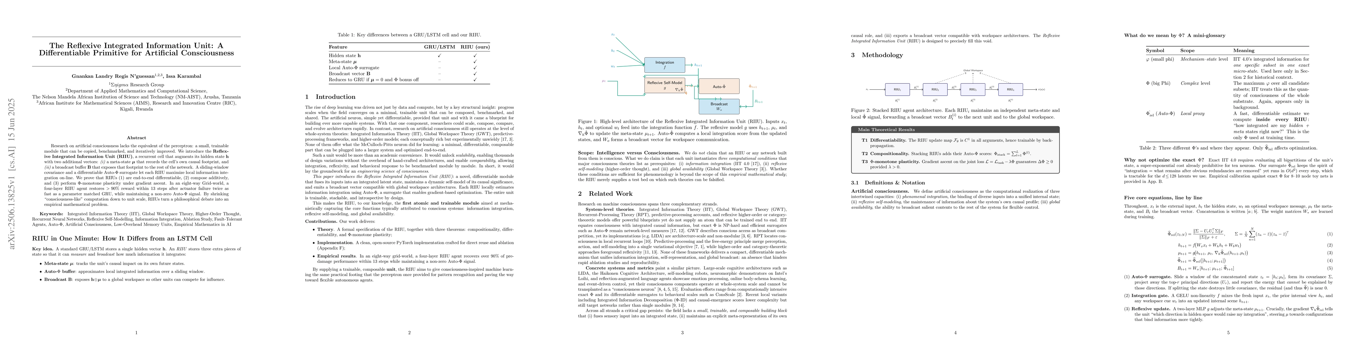 Research on artificial consciousness lacks the equivalent of the perceptron: a small, trainable module that can be copied, benchmarked, and iteratively improved. We introduce the Reflexive Integrated Information Unit (RIIU), a recurrent cell that augments its hidden state $h$ with two additional vectors: (i) a meta-state $\mu$ that records the cell's own causal footprint, and (ii) a broadcast buffer $B$ that exposes that footprint to the rest of the network. A sliding-window covariance and a differentiable Auto-$\Phi$ surrogate let each RIIU maximize local information integration online. We prove that RIIUs (1) are end-to-end differentiable, (2) compose additively, and (3) perform $\Phi$-monotone plasticity under gradient ascent. In an eight-way Grid-world, a four-layer RIIU agent restores $>90\%$ reward within 13 steps after actuator failure, twice as fast as a parameter-matched GRU, while maintaining a non-zero Auto-$\Phi$ signal. By shrinking "consciousness-like" computation down to unit scale, RIIUs turn a philosophical debate into an empirical mathematical problem.