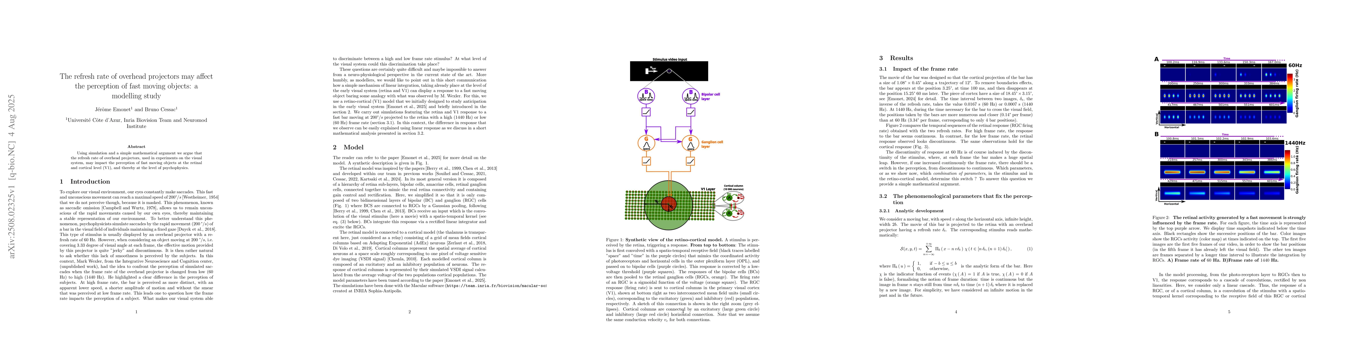 Using simulation and a simple mathematical argument we argue that the refresh rate of overhead projectors, used in experiments on the visual system, may impact the perception of fast moving objects at the retinal and cortical level (V1), and thereby at the level of psychophysics.