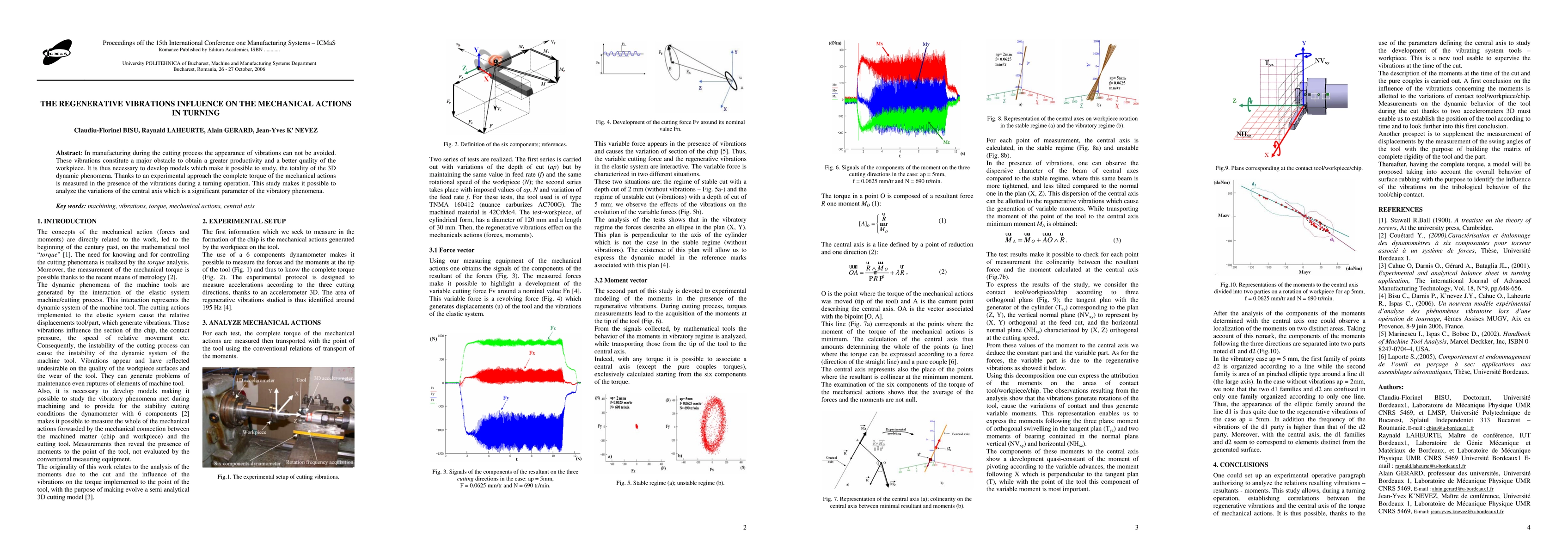 This paper investigates the impact of regenerative vibrations on mechanical actions during the turning process in manufacturing, aiming to improve productivity and workpiece quality. Experimental measurements of the complete torque during turning operations reveal significant variations in the central axis, highlighting the importance of understanding these dynamic phenomena.