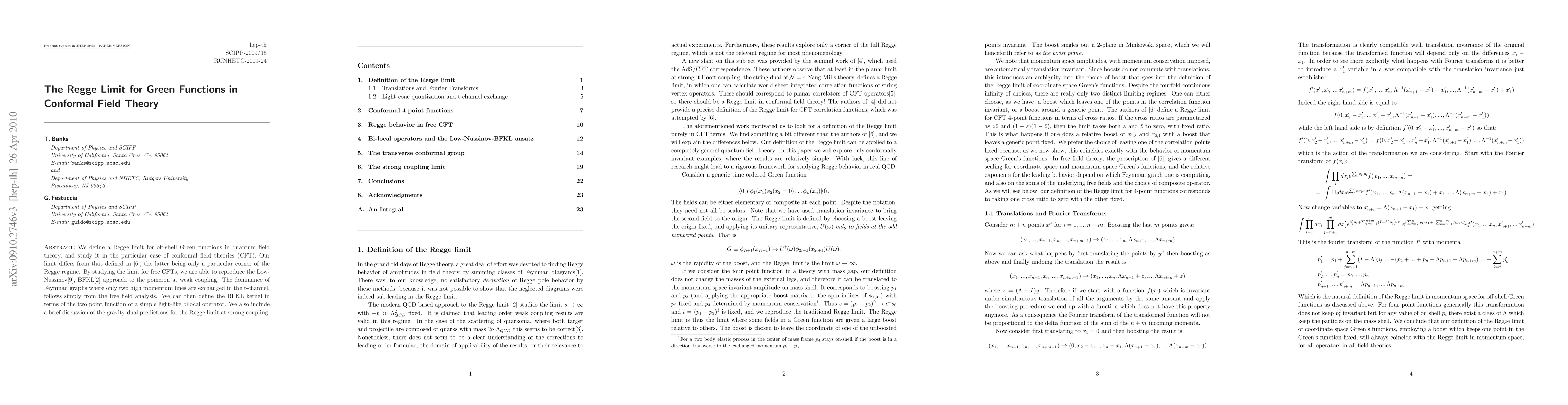 This paper defines a novel Regge limit for off-shell Green functions in conformal field theory, differing from previous approaches. It demonstrates the limit's application in free CFTs, leading to the BFKL pomeron at weak coupling and a definition of the BFKL kernel via a light-like bilocal operator.