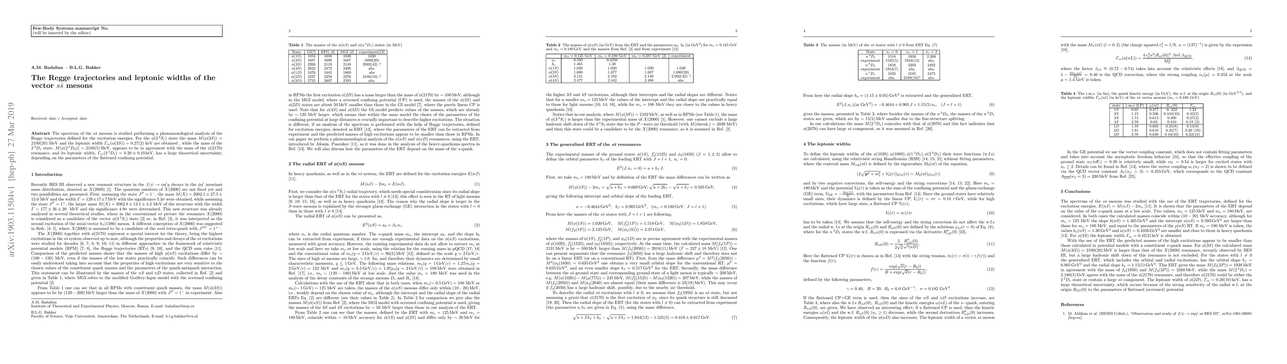 This study phenomenologically analyzes Regge trajectories to determine the spectrum of s\bar s mesons. It finds the mass and leptonic width of the φ(3³S_1) state as 2100(20) MeV and 0.27(2) keV, respectively. The 2³D_1 state's mass aligns with the φ(2170) resonance, having a leptonic width of 0.20±0.10 keV with considerable theoretical uncertainty based on confining potential parameters.