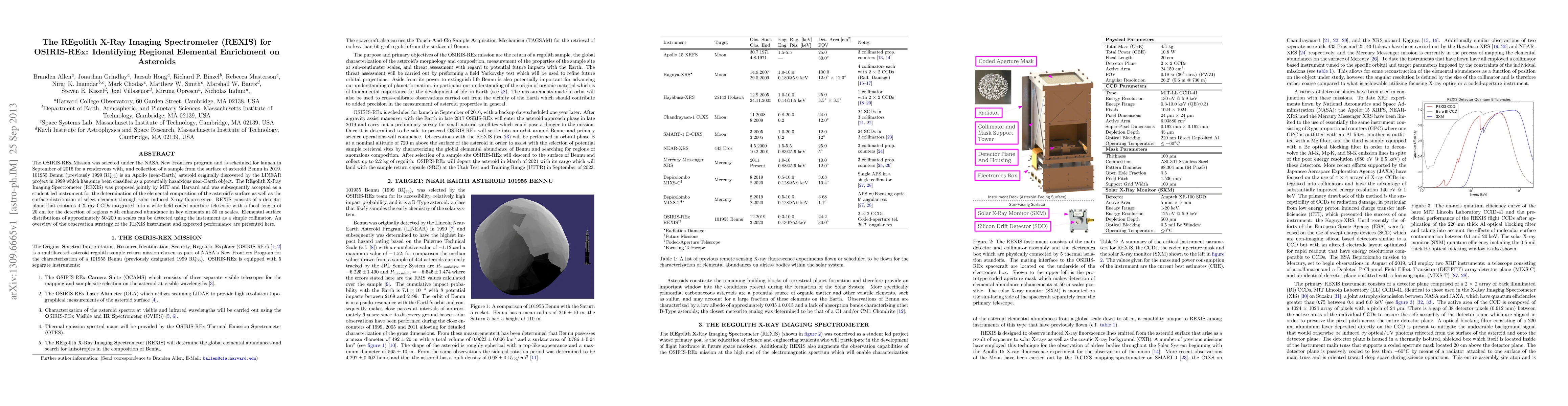 The OSIRIS-REx Mission was selected under the NASA New Frontiers program and is scheduled for launch in September of 2016 for a rendezvous with, and collection of a sample from the surface of asteroid Bennu in 2019. 101955 Bennu (previously 1999 RQ36) is an Apollo (near-Earth) asteroid originally discovered by the LINEAR project in 1999 which has since been classified as a potentially hazardous near-Earth object. The REgolith X-Ray Imaging Spectrometer (REXIS) was proposed jointly by MIT and Harvard and was subsequently accepted as a student led instrument for the determination of the elemental composition of the asteroid's surface as well as the surface distribution of select elements through solar induced X-ray fluorescence. REXIS consists of a detector plane that contains 4 X-ray CCDs integrated into a wide field coded aperture telescope with a focal length of 20 cm for the detection of regions with enhanced abundance in key elements at 50 m scales. Elemental surface distributions of approximately 50-200 m scales can be detected using the instrument as a simple collimator. An overview of the observation strategy of the REXIS instrument and expected performance are presented here.