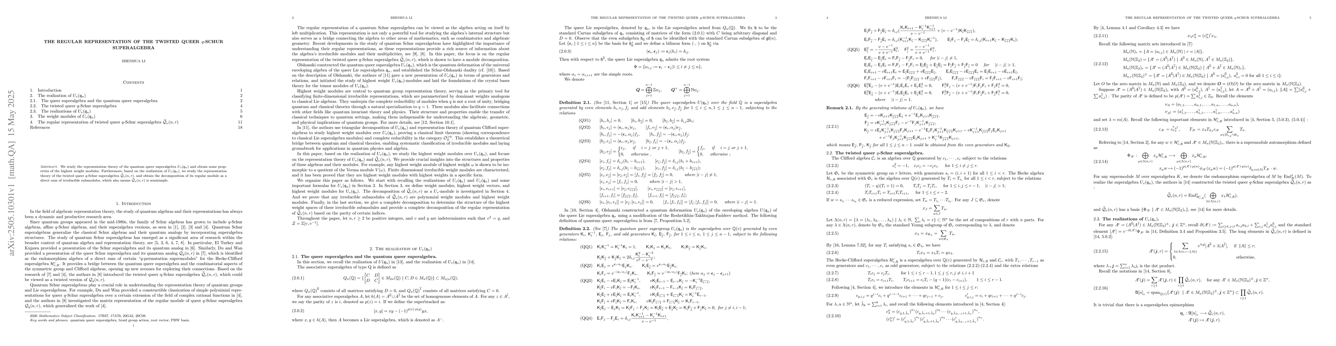 The paper explores the representation theory of the quantum queer superalgebra U_v(mathfrak{q}_n) and utilizes its realization to study the twisted queer q-Schur superalgebra tilde{Q}_v(n,r).
