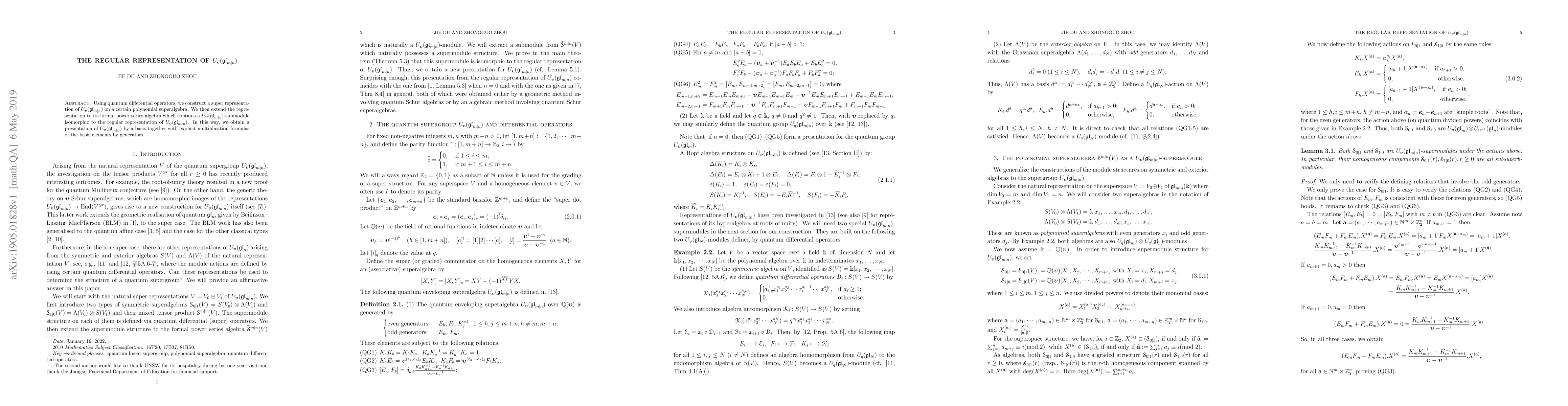 This paper constructs a super representation of $U_v(\mathfrak{gl}_{m|n})$ using quantum differential operators on a polynomial superalgebra and extends it to a formal power series algebra, revealing a $U_v(\mathfrak{gl}_{m|n})$-submodule isomorphic to its regular representation, thus providing a basis and explicit multiplication formulas.
