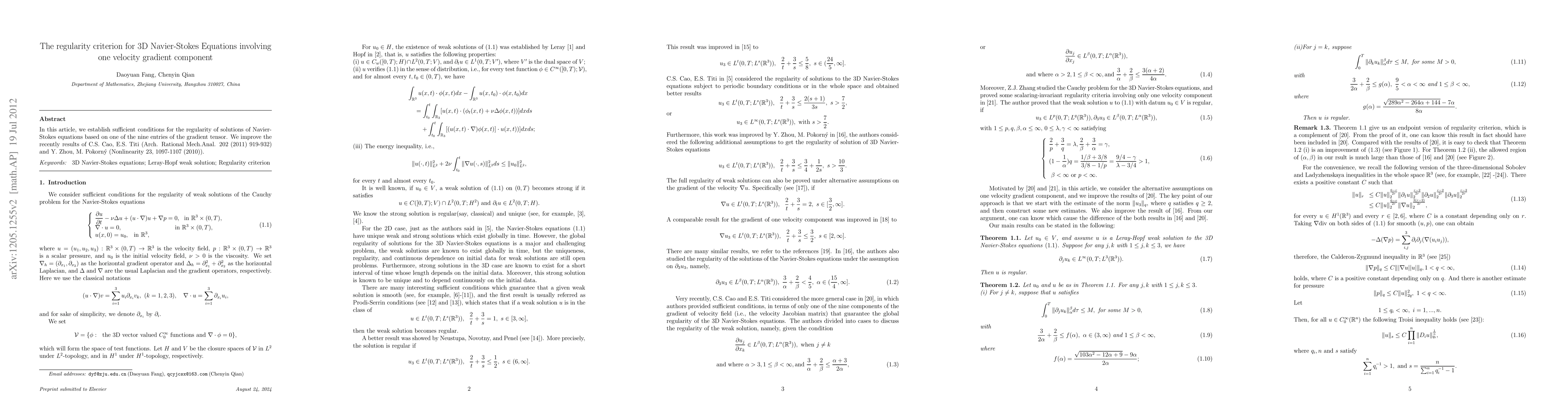 Researchers establish conditions for regularity of Navier-Stokes solutions based on specific gradient tensor entries, improving earlier results in the field.