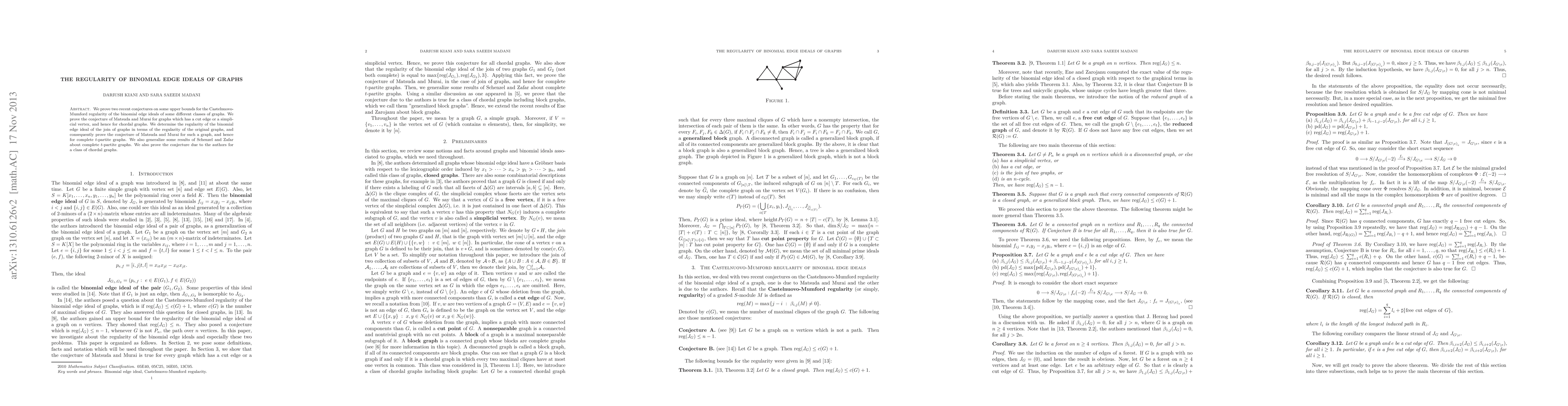 This paper proves conjectures regarding the Castelnuovo-Mumford regularity of binomial edge ideals for specific classes of graphs, including those with cut edges or simplicial vertices, and complete $t$-partite graphs. It also generalizes previous results and establishes the regularity for the join of graphs.