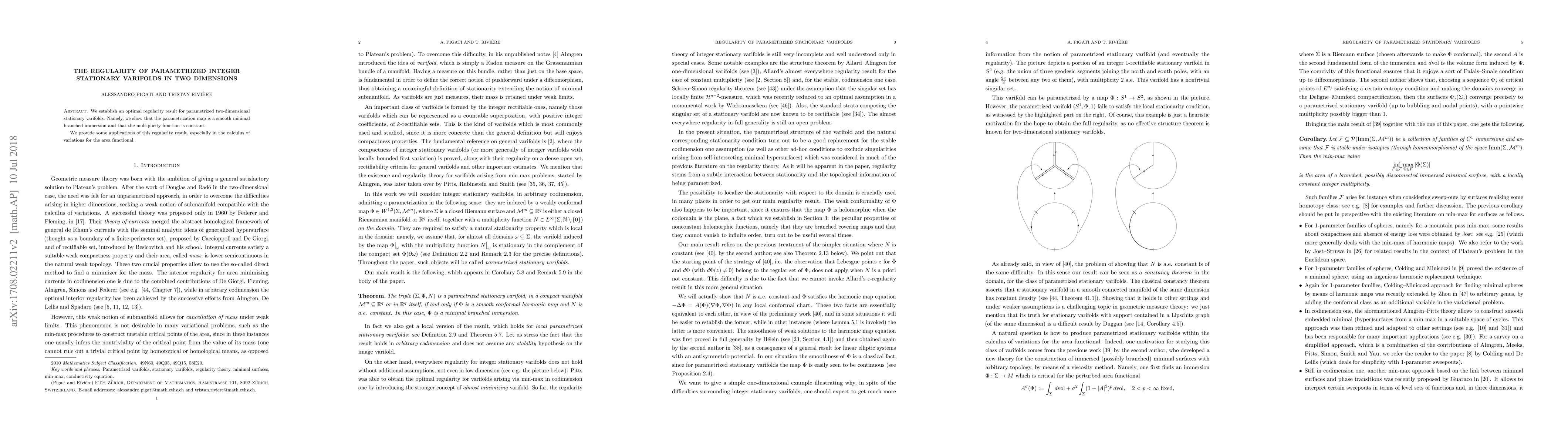 Researchers establish a regularity result for 2D stationary varifolds, showing that parametrization maps are smooth and have constant multiplicity functions.