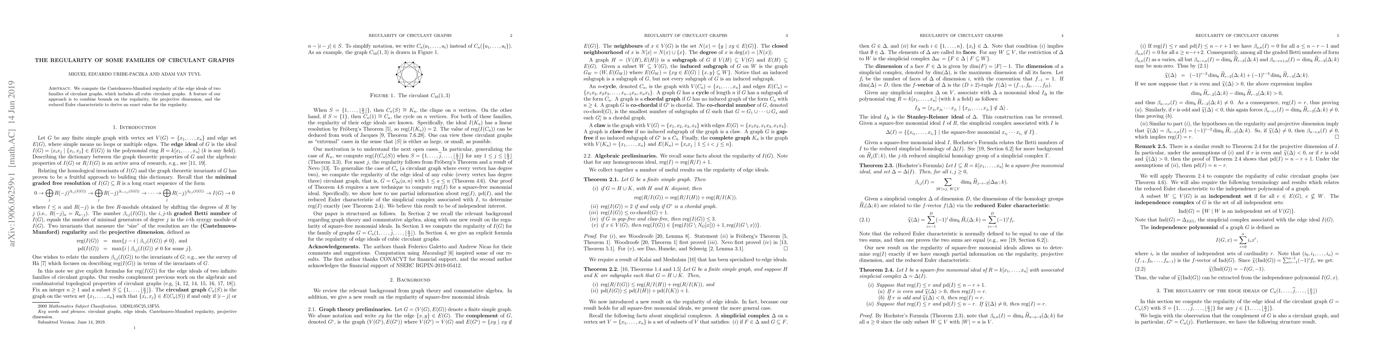 We compute the Castelnuovo-Mumford regularity of the edge ideals of two families of circulant graphs, which includes all cubic circulant graphs. A feature of our approach is to combine bounds on the regularity, the projective dimension, and the reduced Euler characteristic to derive an exact value for the regularity.